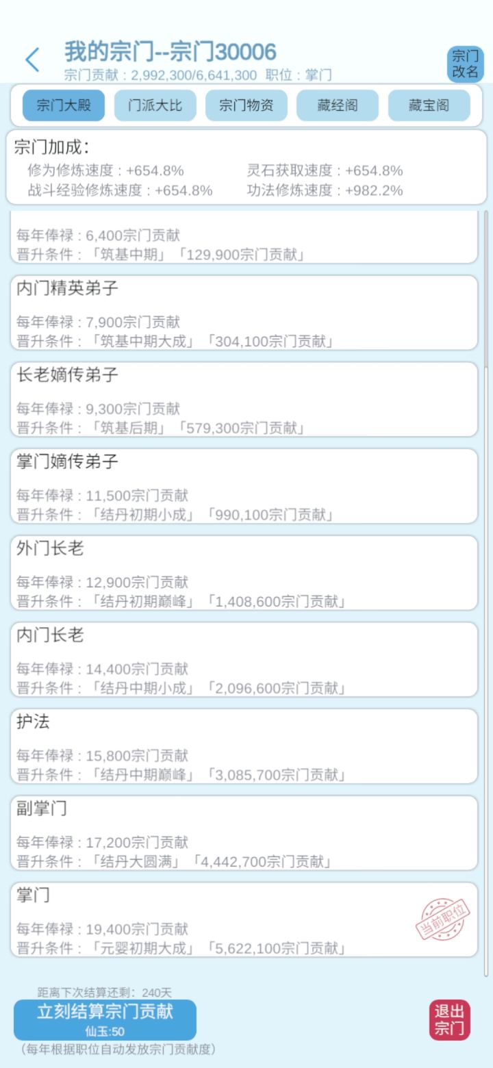 宗门职位已经升满了,但退出宗门的加成可能会没加成,我不清楚另外一个宗门的加成可能没有现在宗门加成多,所以想问一下各位一个宗门只为升满之后可不可以退?