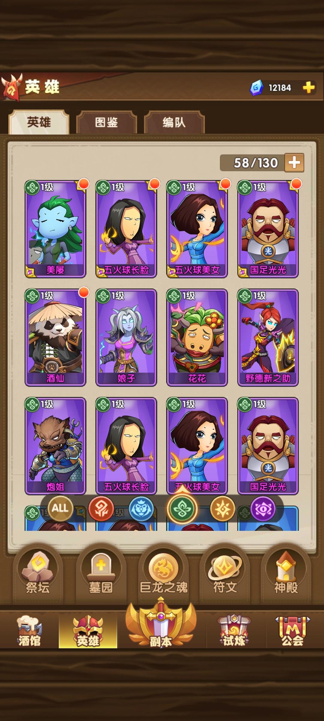 可以看到阵容方面还是很烂的,白嫖复刻阵容难度较低,只要普通非酋水准。三色阵容里除剑圣外,已知是炮姐+沉默女前期推图最强,用高星狗粮的等级共鸣,可以让本体不够的主力提前享受高等级,高星狗粮过渡能过渡到英雄等级160级,因为狗粮卡上限只能升到橙+。装备方面白嫖复刻难度不低,必须要一般偏上运气才能复刻,公会快的话第五天、慢的话第六天,升到四级开启红装购买,也就是两三次红装购买里