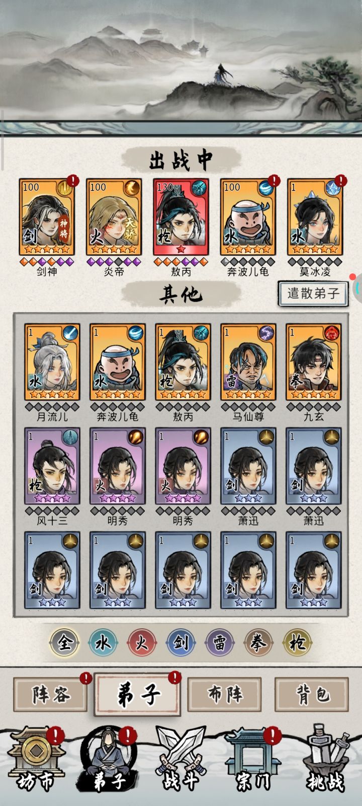 刚玩第二天,目前就氪了两张月卡,一张自动战斗卡。人物就这些,目前23关全三星。。。剑神能不能抽出来啊?
