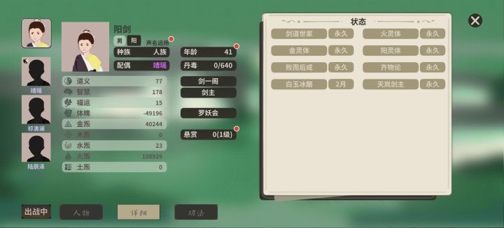 我是新手,一开始选了一个剑道世家和金灵体,想加入剑一阁,结果跑到剑一阁就发现体魄降低到9了,刚好没法完成加入剑一阁的需求,过了一会发现体魄降低为0了