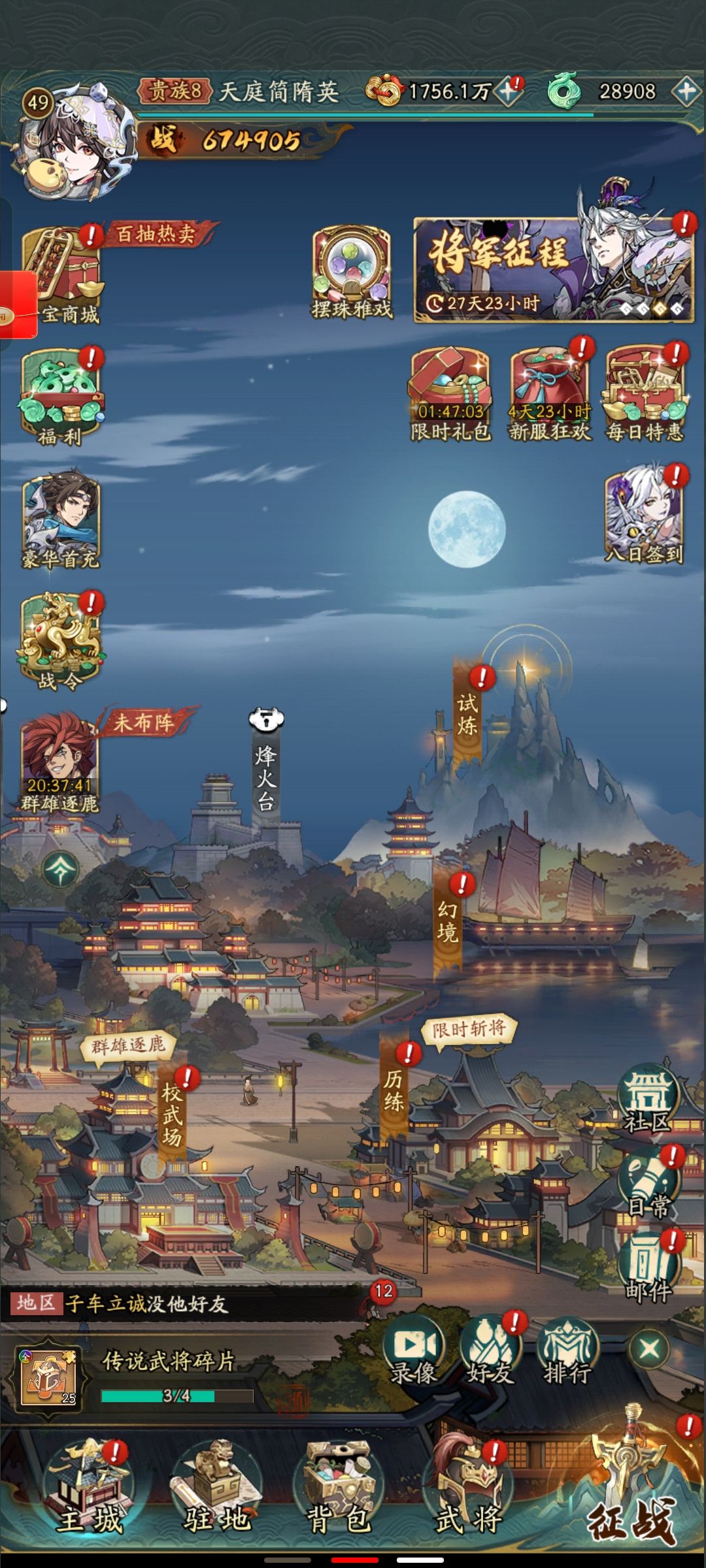第一天大家都正常推图,开功能,主要讲一下我们接下来的计划.以及一些细节 首先未来一个月的目标就是月旦评和名将集结,如果按照正确的思路来,这两个零氪都能稳拿(大概在20来天) 第二,从第二天起会有限时七天的斩将,这是七天小目标,虎符,将印和传承玉(传承玉用于洗涤虎符技能时锁虎符技能,极为稀缺,限时斩将是未来一个月唯一获取大量传承玉的途径,零氪尽量拿满,开启活动我会再细说) 第三,商铺购买选择 日
