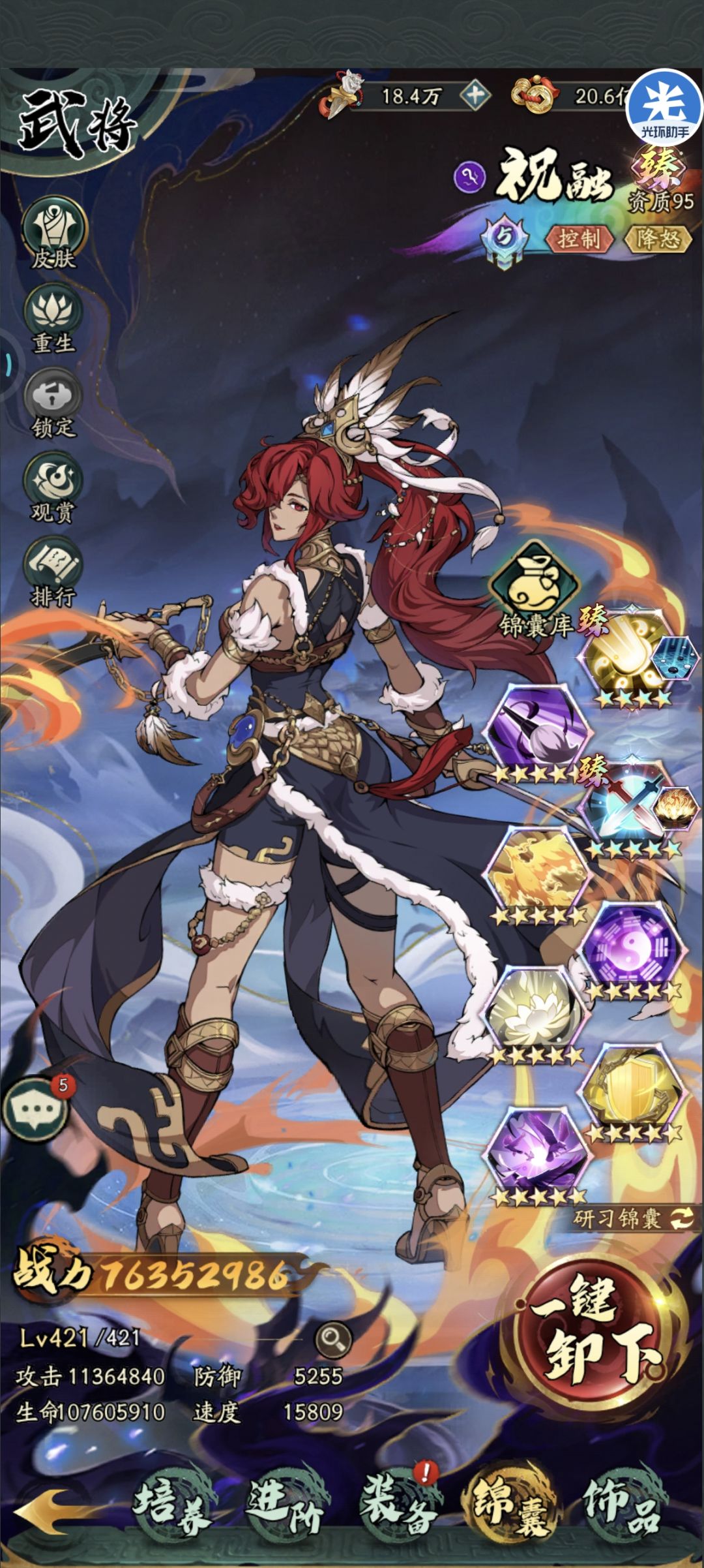 马超 神关(祝融) 华佗 马云禄 司马懿 诸葛亮 阵容核心马云禄(六藏无双一即可,没有可暂用步练师替代但是容错较低) 氪金方向提升阵容上限推荐满星炎曦六藏华佗马超诸葛亮马云禄四藏司马懿 虎符将印宝石兵法推荐 马超 2速度4暴击 虎符 极速物连必备,次选物攻狂暴锐进 将印 穿甲鹰眼不可替换 宝石 五级2攻击1爆伤1伤害六级2攻爆 兵法 料敌 司马懿 2速度4暴击 虎符 极速封禁必备,优法