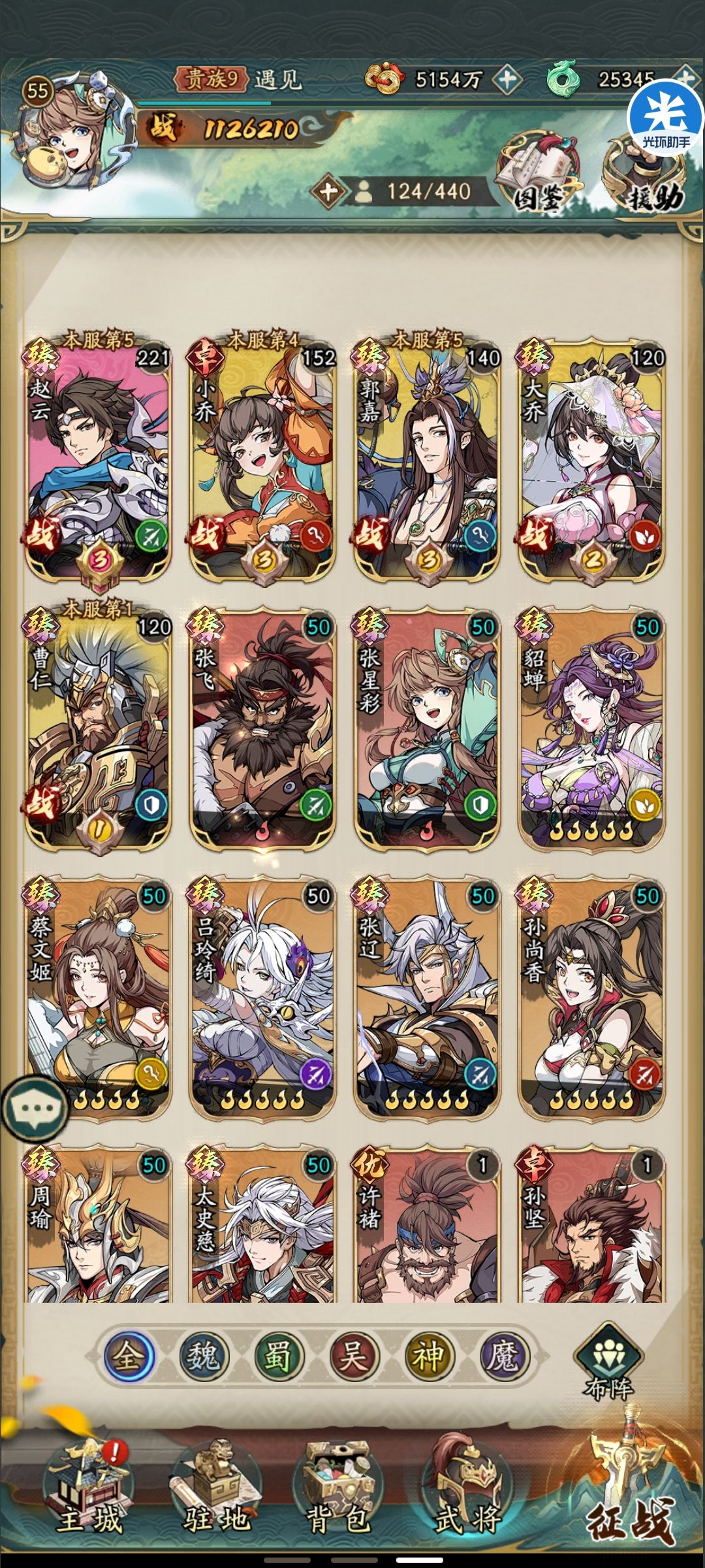 也就是说,2500抽没见到赵云,关羽也是积分出的,老区锁卡依旧严重,300神魔阵营全是狗粮。 因为锁卡,前期只能用小乔和黄月英主力,起码给了郭嘉不至于太惨,这是PVE,PVP竞技基本上打不过同战力关羽连击阵容。 黄月英、小乔、甄宓、貂蝉全都回退了,目前关羽、马超、典韦、吕玲绮、郭嘉400万,打PVE越战300万左右,打PVP也不怵头了,果然首充党就该养关羽和马超。 马超用阵营积分换了四个本体,神关