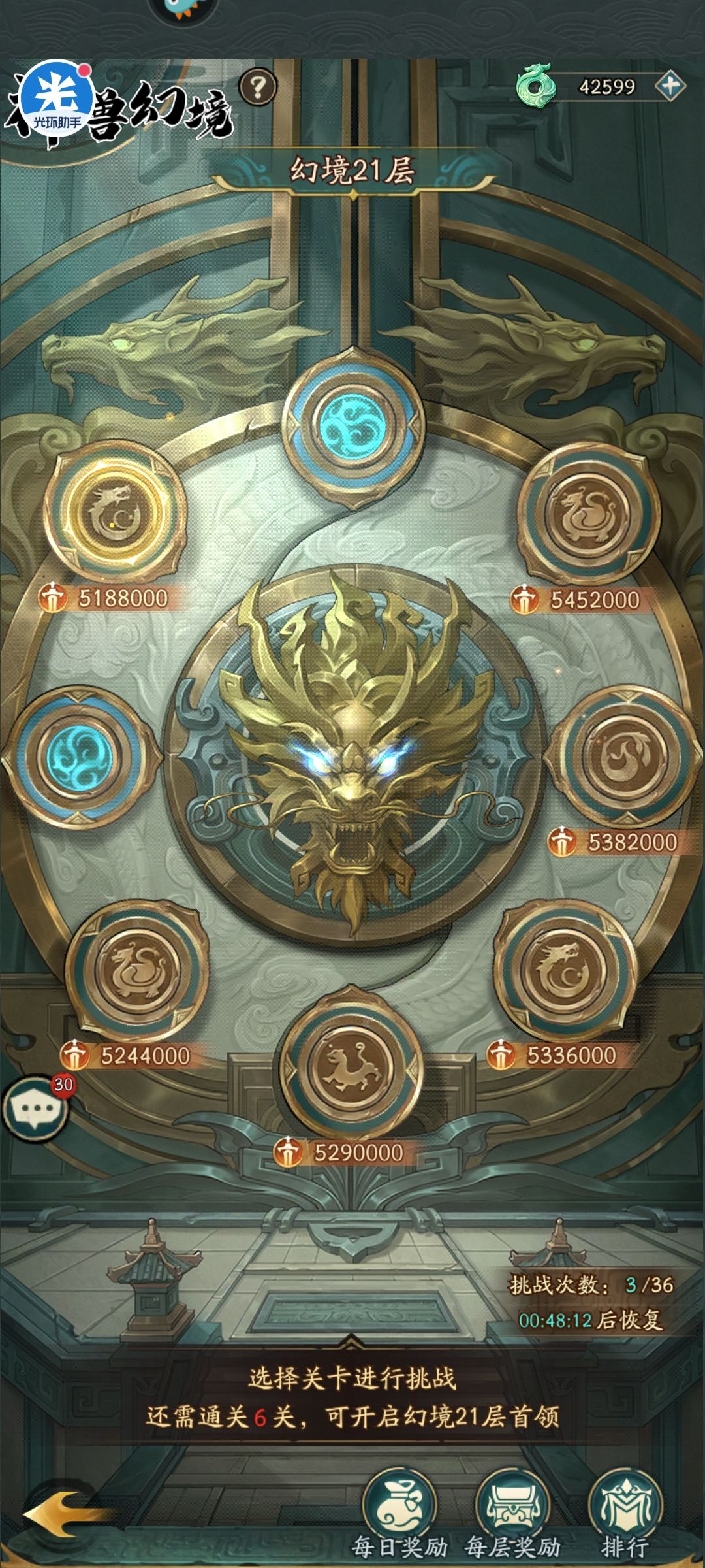 大家注意到神兽幻境这里有一个【每层奖励】的说明了吗? 大家点进去可以往后看每层奖励,看到这些,特别是最近在搞五星玄武或者其他五星神兽的小伙伴们,可以注意一下这里,不要把极品神兽碎片搞溢出太多了,因为1片极品神兽碎片溢出了之后只能分解成4个绿色的神魂晶石。 像楼主之前只注意消耗挑战次数了,没有注意这里,今天才发现这里,也算是及时发现,没有把极品神兽碎片搞溢出,楼主的玄武就差不到两百片就五星了,正好这