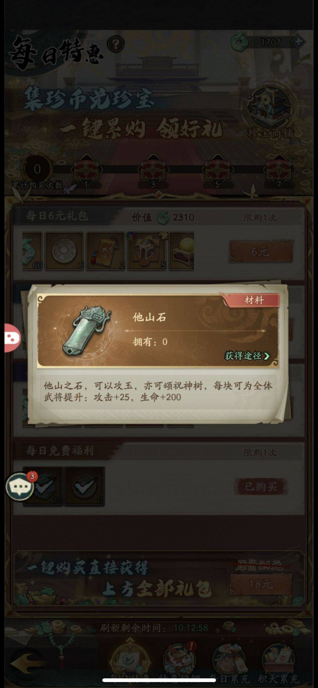 如题,每天买满18元日礼包,就能得到四块这种他仙石,这种石头的获取途径只能通过氪金日礼包获得,而且没有使用上限,也就是说每天氪满18元日礼包,每天都能永久性增加全体武将100攻击力800生命值的属性,注意⚠️是每天,10天就是1000攻击力8000生命值,少氪一天这种礼包的平民或者迟一天入坑又打算氪这种礼包的氪佬,你的全体武将就会比氪过这种礼包的玩家少一天永久属性的加成,氪金玩家早氪金早体验游戏的
