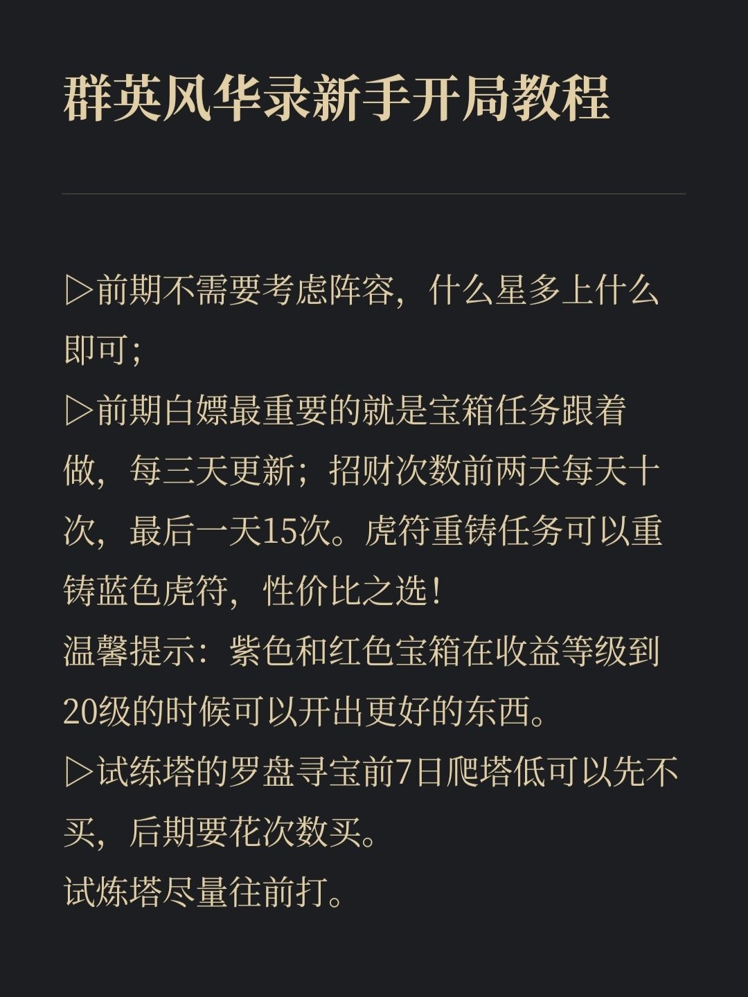 群英游戏攻略丨虎符/锦囊/宝物篇