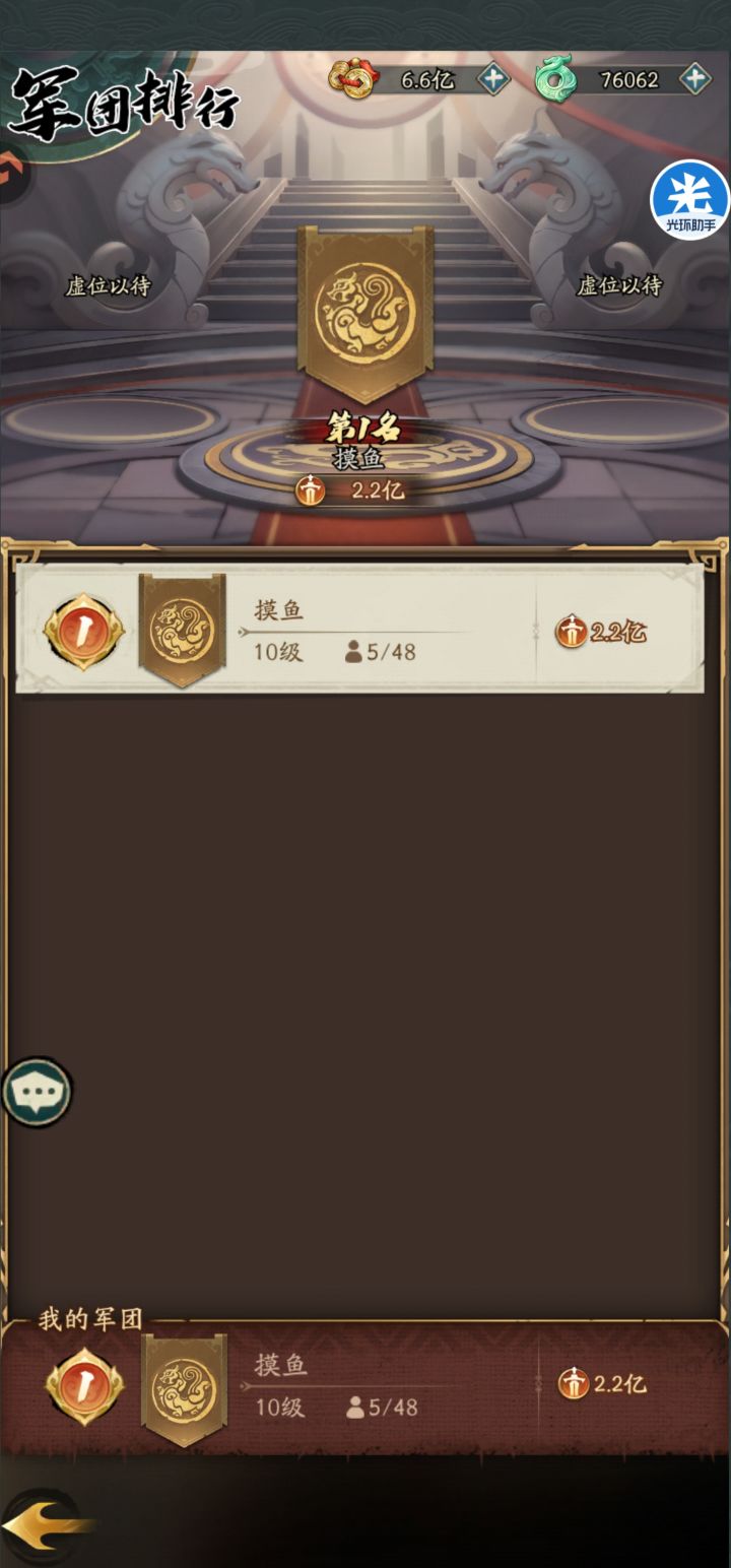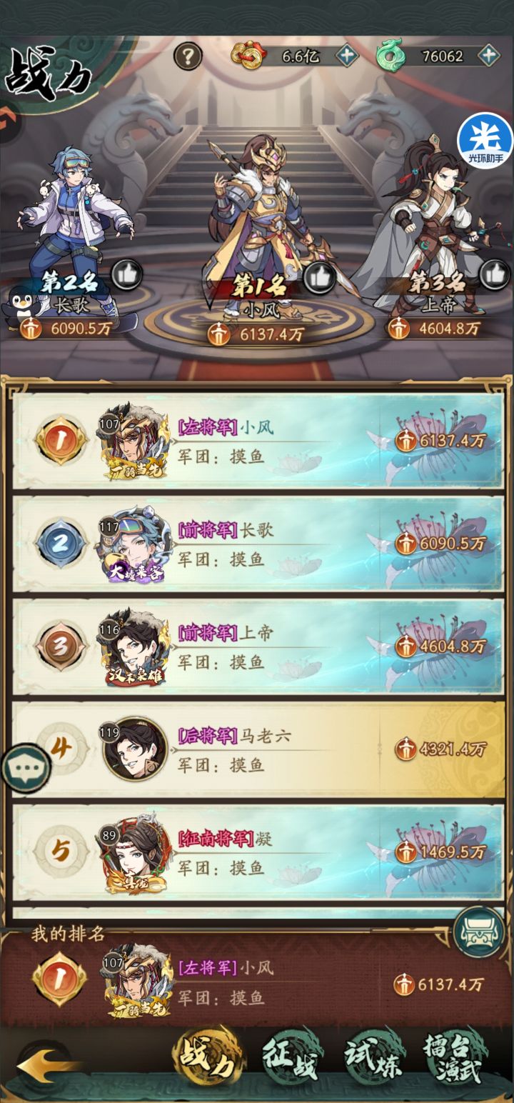 死区了,我这个零氪也能混上战力第一了,哈哈!有人知道啥时候合区吗?现在活动都拿不到分!#群英风华录