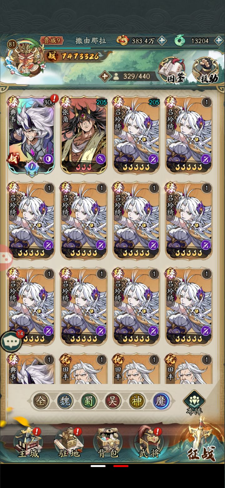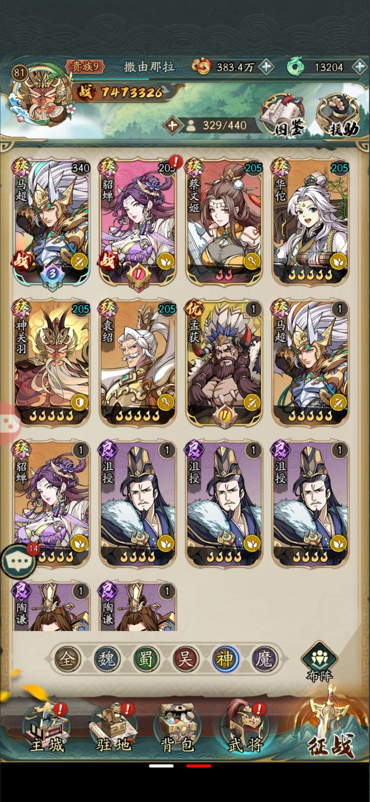郭嘉开局,阵营币换马超,肉和辅助选个曹仁和大桥,还有小吕。五人的话这可以玩儿的舒服点。第六个出来就看你张角多还是蔡文姬多了。前面也就是个这了。
