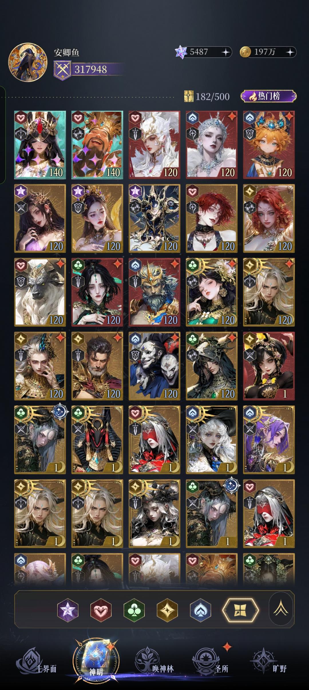 有人质疑,你是不是刷了,你是不是很肝,你是不是在人少区吃了资源。我刷没刷目前也只有8个神5,金色图腾才2个三级,钻石少的可怜。而且我在苹果3区,所有的排名活动都捞不到好名次,高阶角斗场进不了前8。宙斯哪吒也借不到,唯一借了大佬一次哪吒过500层,半天没还,大佬私我让我还,我没看到,结果把我好友删了,从那以后我都不借宙斯和哪吒了。所以通关57章真没想象中的难。搭配好过图很快的,下面言归正传。我只以