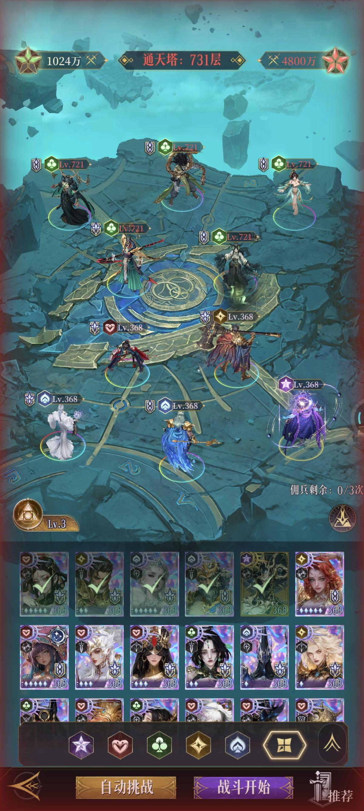 有人质疑,你是不是刷了,你是不是很肝,你是不是在人少区吃了资源。我刷没刷目前也只有8个神5,金色图腾才2个三级,钻石少的可怜。而且我在苹果3区,所有的排名活动都捞不到好名次,高阶角斗场进不了前8。宙斯哪吒也借不到,唯一借了大佬一次哪吒过500层,半天没还,大佬私我让我还,我没看到,结果把我好友删了,从那以后我都不借宙斯和哪吒了。所以通关57章真没想象中的难。搭配好过图很快的,下面言归正传。我只以
