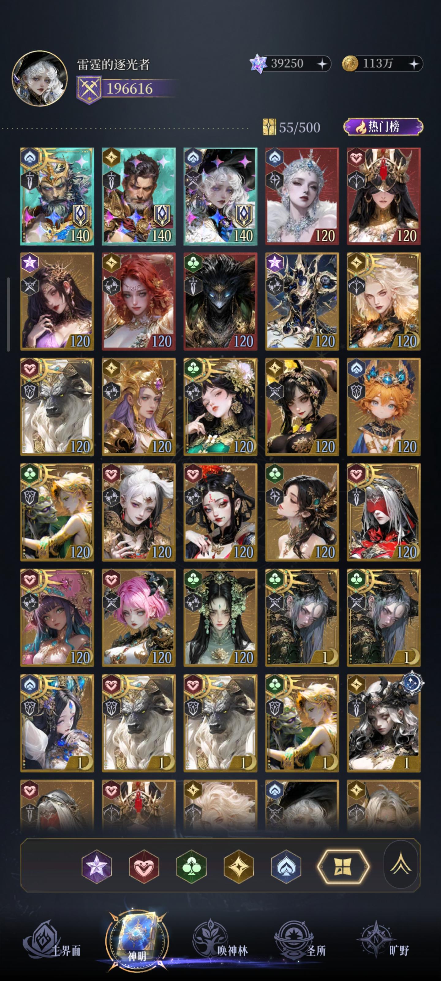 有人质疑,你是不是刷了,你是不是很肝,你是不是在人少区吃了资源。我刷没刷目前也只有8个神5,金色图腾才2个三级,钻石少的可怜。而且我在苹果3区,所有的排名活动都捞不到好名次,高阶角斗场进不了前8。宙斯哪吒也借不到,唯一借了大佬一次哪吒过500层,半天没还,大佬私我让我还,我没看到,结果把我好友删了,从那以后我都不借宙斯和哪吒了。所以通关57章真没想象中的难。搭配好过图很快的,下面言归正传。我只以