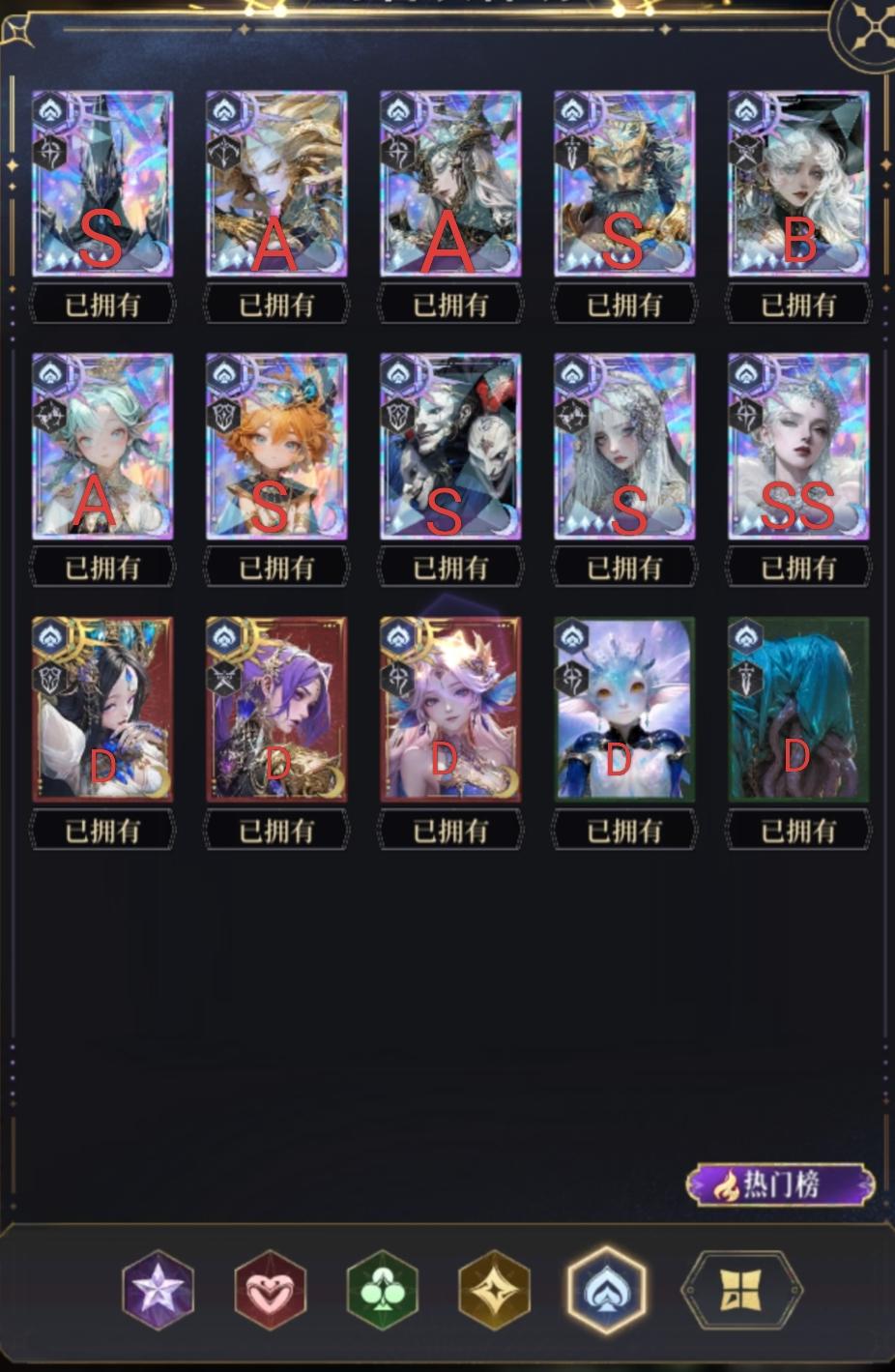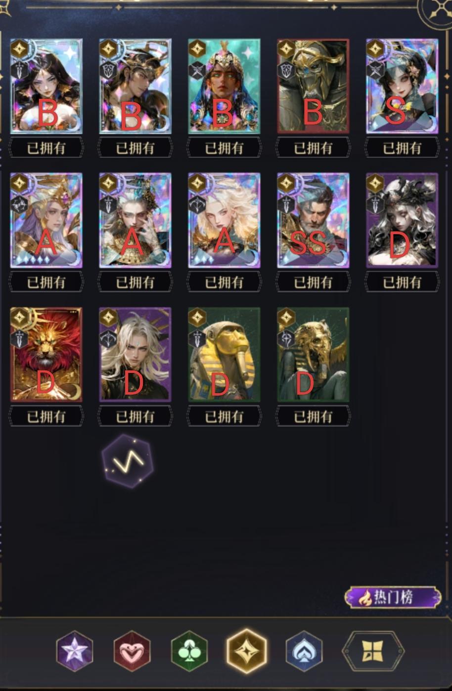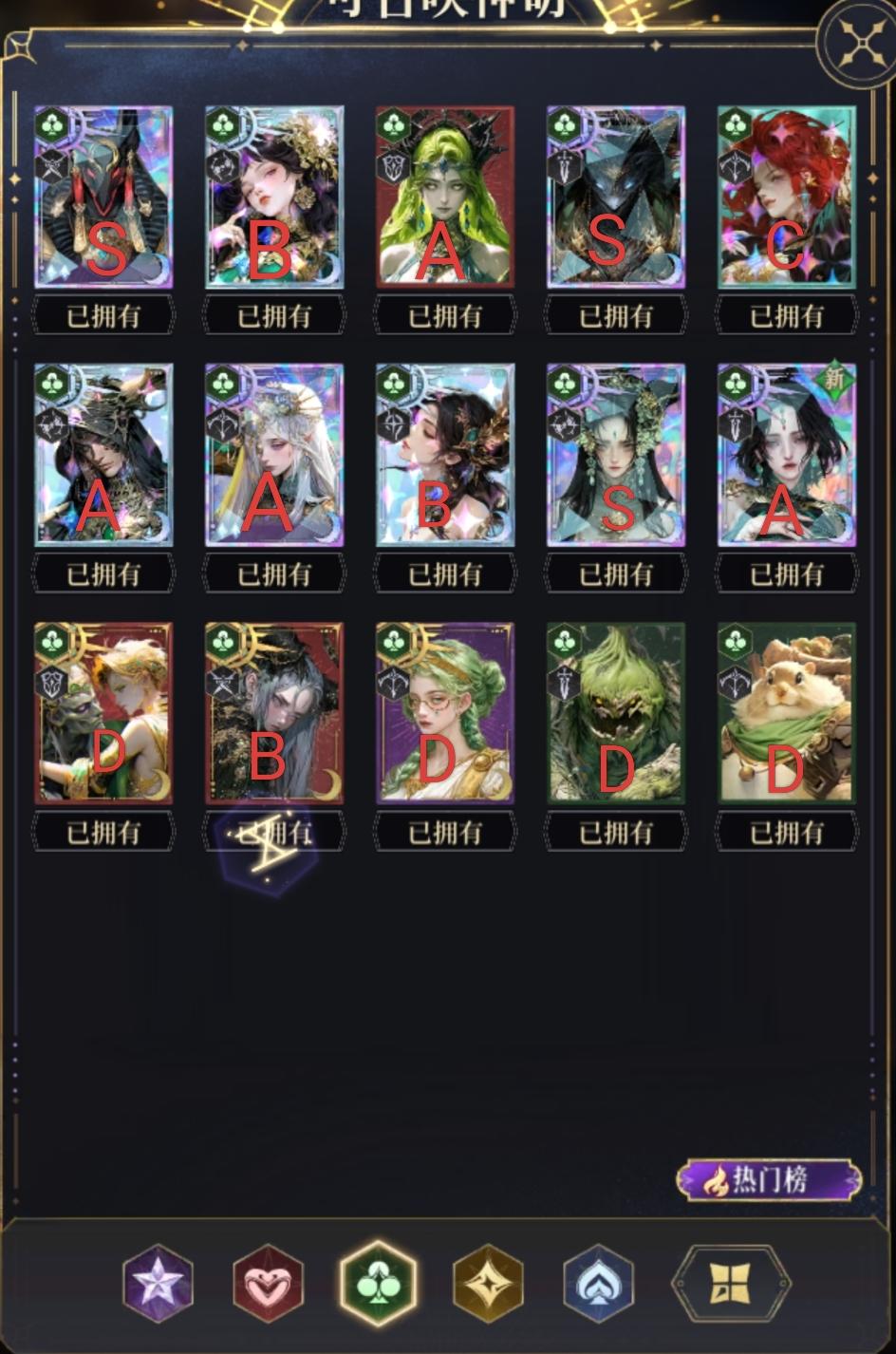 友情提示:神明强度不代表练度优先级强度定义SSS:竞技场+图塔+BOSS 顶级SS:竞技场+图塔+BOSS 较强S:竞技场/图塔/BOSS其中一项较强或者适用性广但强度一般A:特定场合比较好用或者需要搭配使用的B:偶尔有点作用,但很容易被替代的卡C:基本没什么作用D:没价值吐槽一下:剑姬装备和技能不配套,法伤技能带物理装备#不朽箴言 #浅评一下