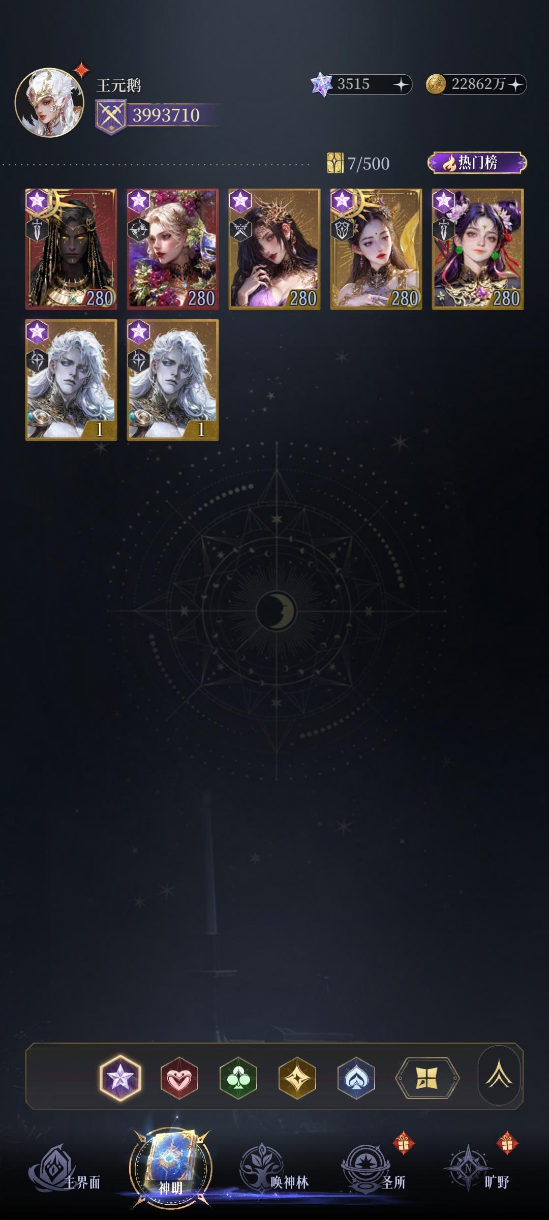 来回就这套阵容,少量图偶尔微调下,怪来回就那几个阵容其实队伍成型推图也就简单了,我也是女王up以后一口气从43来到52,女王确实是人权卡,也祝大家玩得快乐