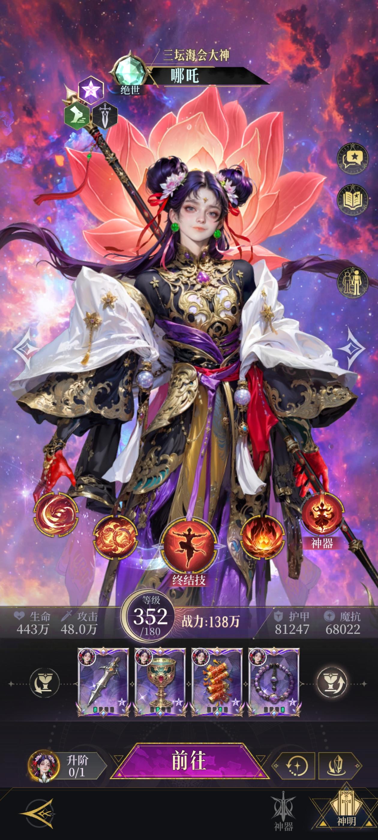 不过我还是准备一个都不抽,这卡刚需神话.没有神话比哪吒还弱,因为神话四级神器可以满怒幻影.而神话辅助星卡只能锦上添花.打跨服pvp的大佬用这个打pvp应该蛮强的.我这连跨服资格都没得人就算了