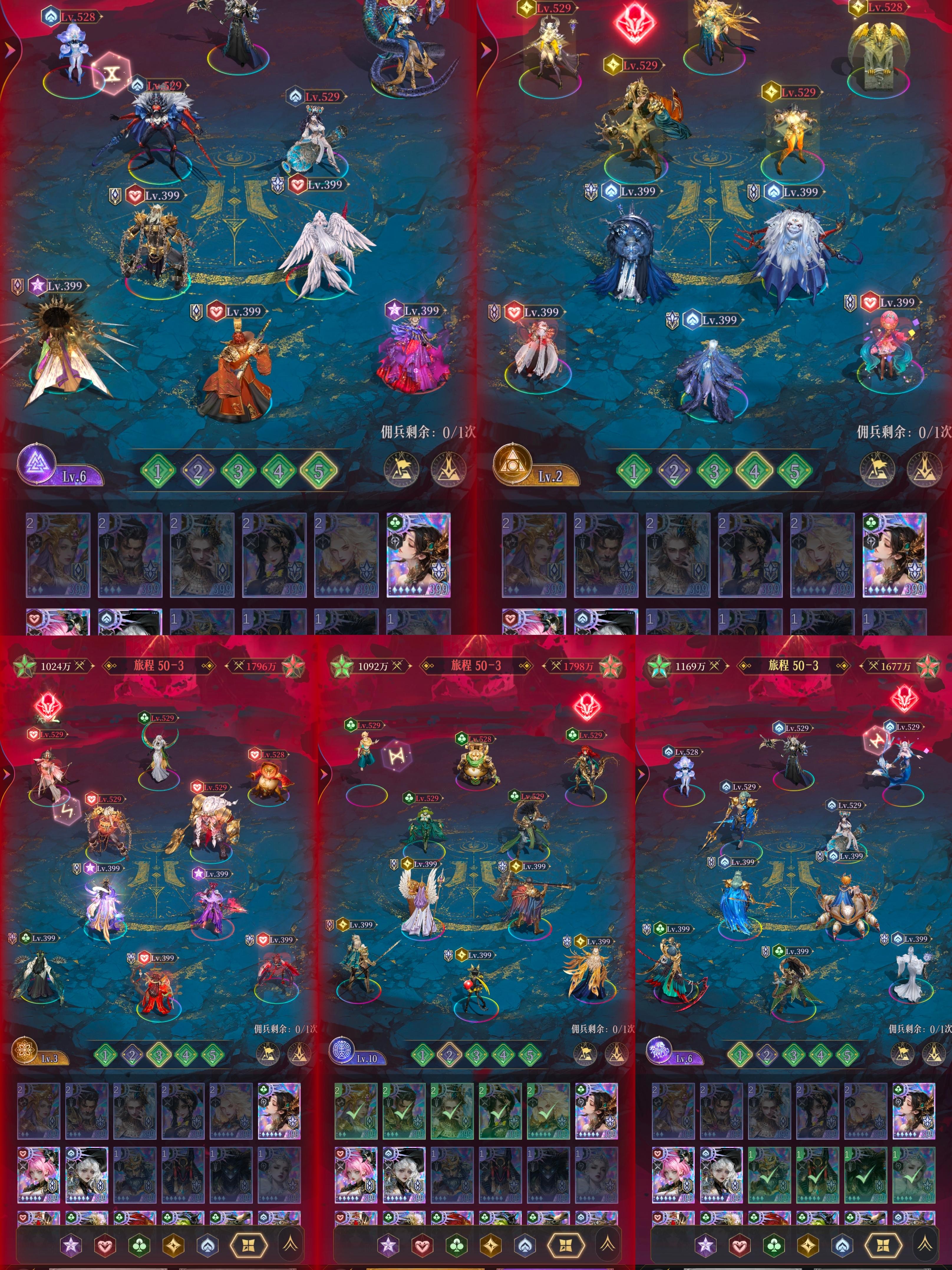 图2到图6就是阵容,全程不换人,有些关需要微调站位。这个新出的女魃不是c,定位跟瘟神差不多,试了各种队伍,只能塞进三项队当前排,减对面能量让三项快速开大,对其他队伍没任何用处,三项队提升不少。这游戏四系只有三个大c:鹅、大力、雪女。三项只能说是c,但不是大c,太需要队友,而且打不了有突进的队伍。一共需要5个队伍,氪捞有娜扎和宙斯,5个大c很容易配。小氪0氪强烈建议搞娜扎,我绝世娜扎在47