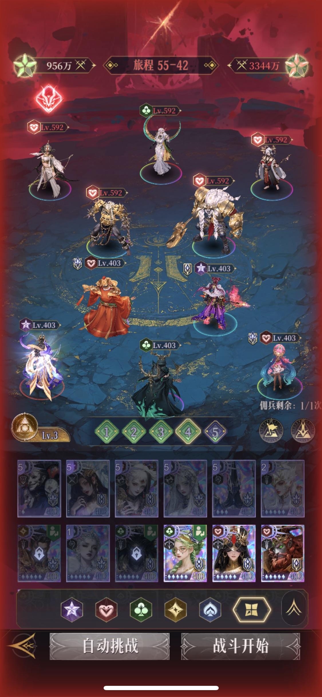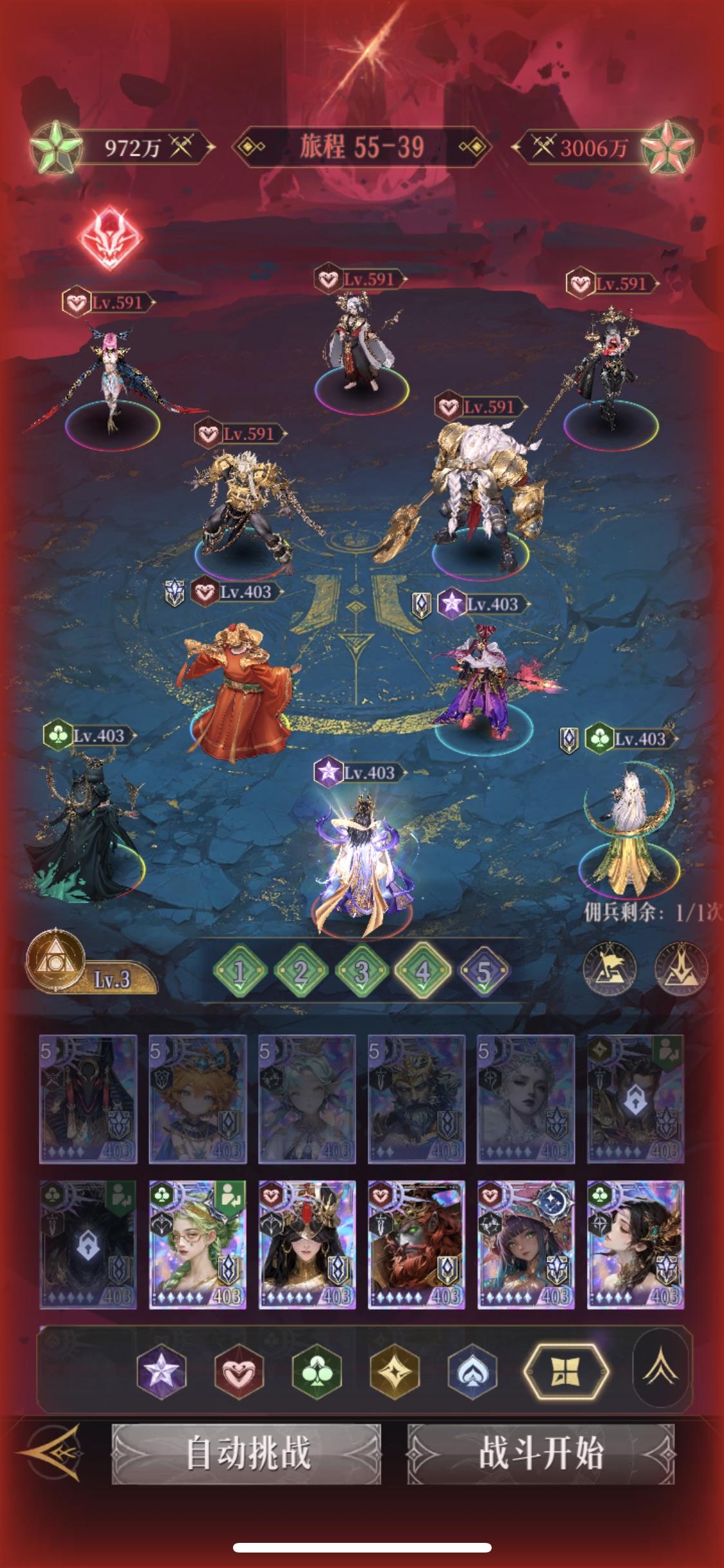 主要聊聊52之后的推图思路,在52章之后推图难度有了质的飞跃,在56.57难度又飙升了一截首先说说四觉,要推过57对练度的要求极高1.宙斯,哪吒至少其中一个是神话2.还要有一个神话星卡配合弱的队3.主力的大力神,冰女,女武神,三相等至少要神话三以上的练度4.要准备至少两个三觉战士石头和两个法师石头这个是我的box,推图时除了宙斯队都是接近超时的57对比之前难度提升了非常多,首先是因为