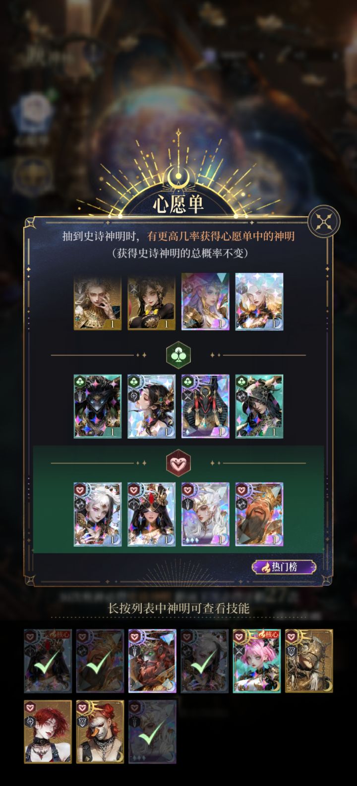 tips:氪佬请拉满宙斯,酷炫全屏伤害,雷电法王,神话+30神器,搭配雅典娜,月老,财神,酒神随便乱杀,pve/pvp通用。拉满大概6-9K。0氪或小氪可参考图2及图3,我的阵容搭配(10级神器的波塞冬开局聚怪可替换进入阵容推图)。在300抽前后能抽到第一张星卡,女娲,倪克斯,酒神一张即可使用。阿蒙拉可作为前排加入队伍。第二张新卡1100左右,后续据说保底在千抽左右(未考证)梅花♣️推荐:1