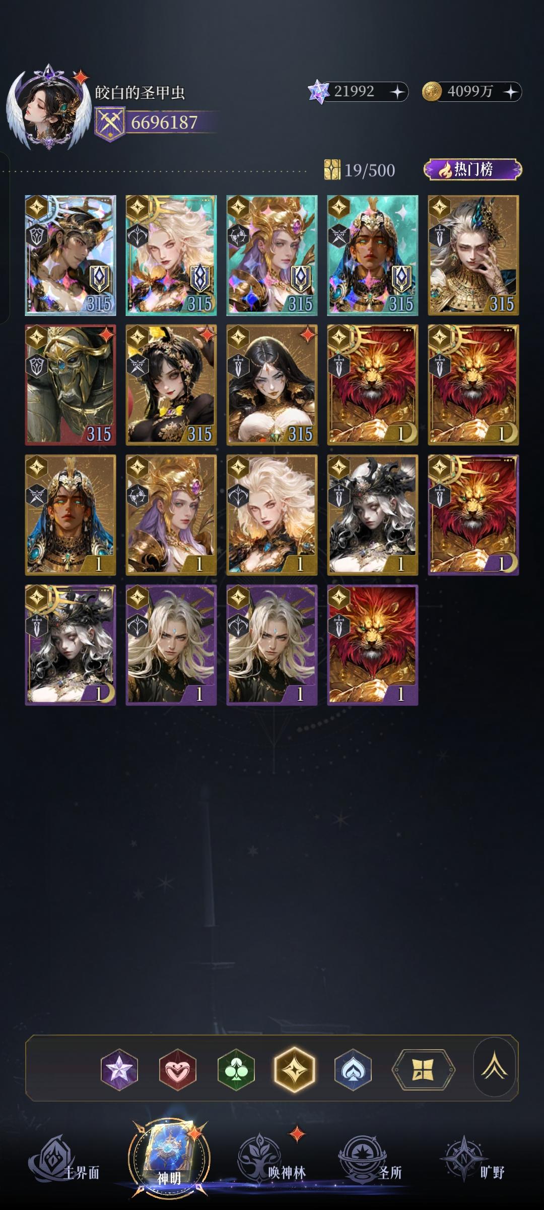 #不朽箴言攻略 大家好啊,继开荒攻略后,第二期角斗场搭配攻略来咯。老规矩图1放我BOX。神器不知道开什么可以参考一下。倪克斯毋庸置疑的PVP强卡,神器专为PVP设计,能够快速做到对位秒杀打开局面形成多打少,这里提一下双方对战,更高阶的倪克斯会优先闪烁到对面倪克斯脸上将其眩晕,所以PVP倪克斯的优先级会很高哦。接下来轮到宙斯,快速启动且伤害爆表,常用搭配有狄安娜,雅典娜,阿蒙拉,赛特,酒神,这