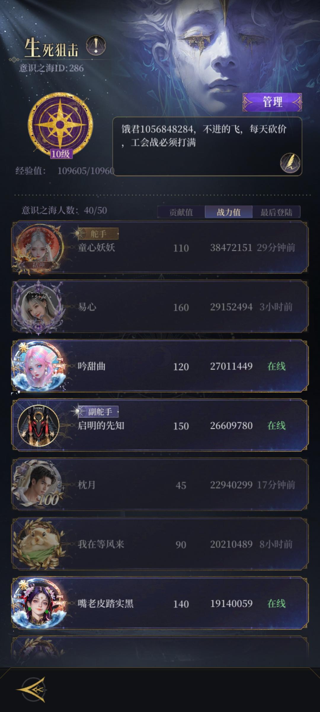公会收高战成员