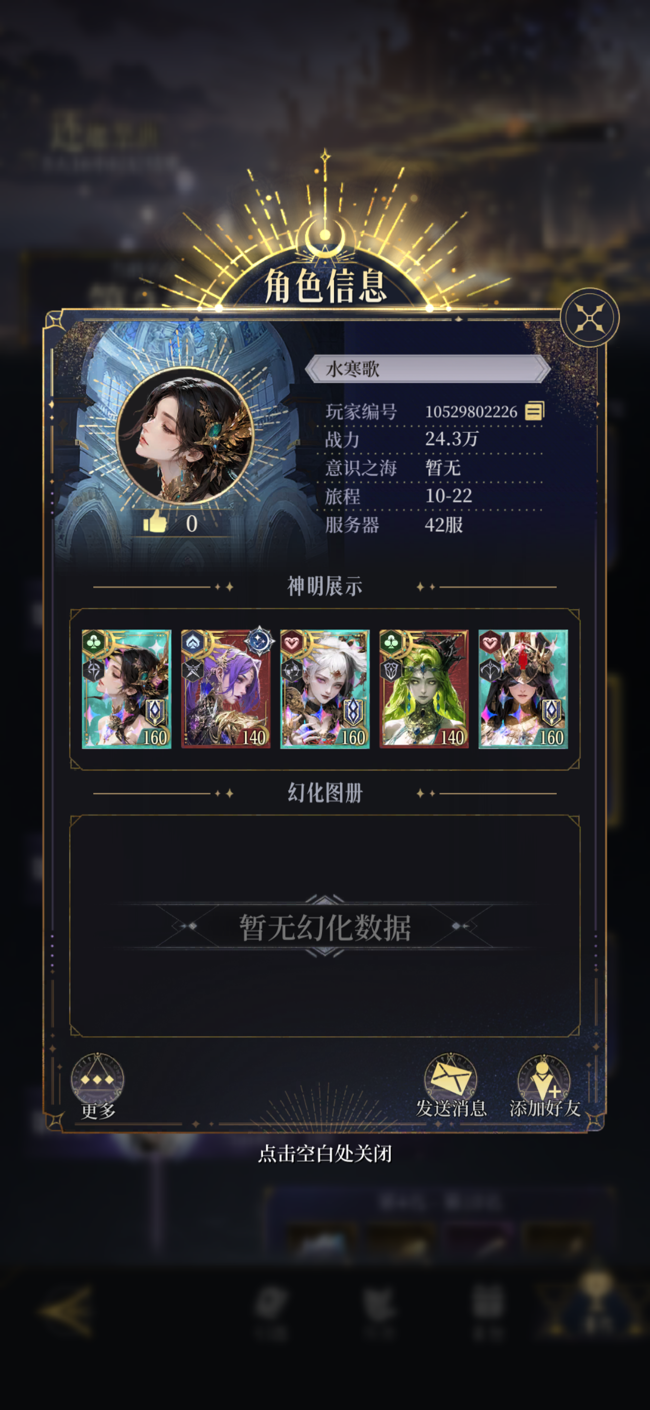 有人质疑,你是不是刷了,你是不是很肝,你是不是在人少区吃了资源。我刷没刷目前也只有8个神5,金色图腾才2个三级,钻石少的可怜。而且我在苹果3区,所有的排名活动都捞不到好名次,高阶角斗场进不了前8。宙斯哪吒也借不到,唯一借了大佬一次哪吒过500层,半天没还,大佬私我让我还,我没看到,结果把我好友删了,从那以后我都不借宙斯和哪吒了。所以通关57章真没想象中的难。搭配好过图很快的,下面言归正传。我只以