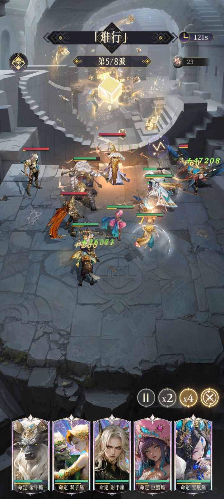 关于本期的无尽轮回-难行篇通关技巧,依旧是金牛座和天秤座跟巨蟹座是固定搭配,形成三角阵,左右俩个可以看着搭配,最好是射手加双鱼,或者射手加宝瓶,增益装备堆剑和弓,图中的阵可以直接套用,直接可以一遍过。#不朽箴言 #不朽箴言TapTap测 #不朽箴言攻 #游戏日常 #发现好游戏
