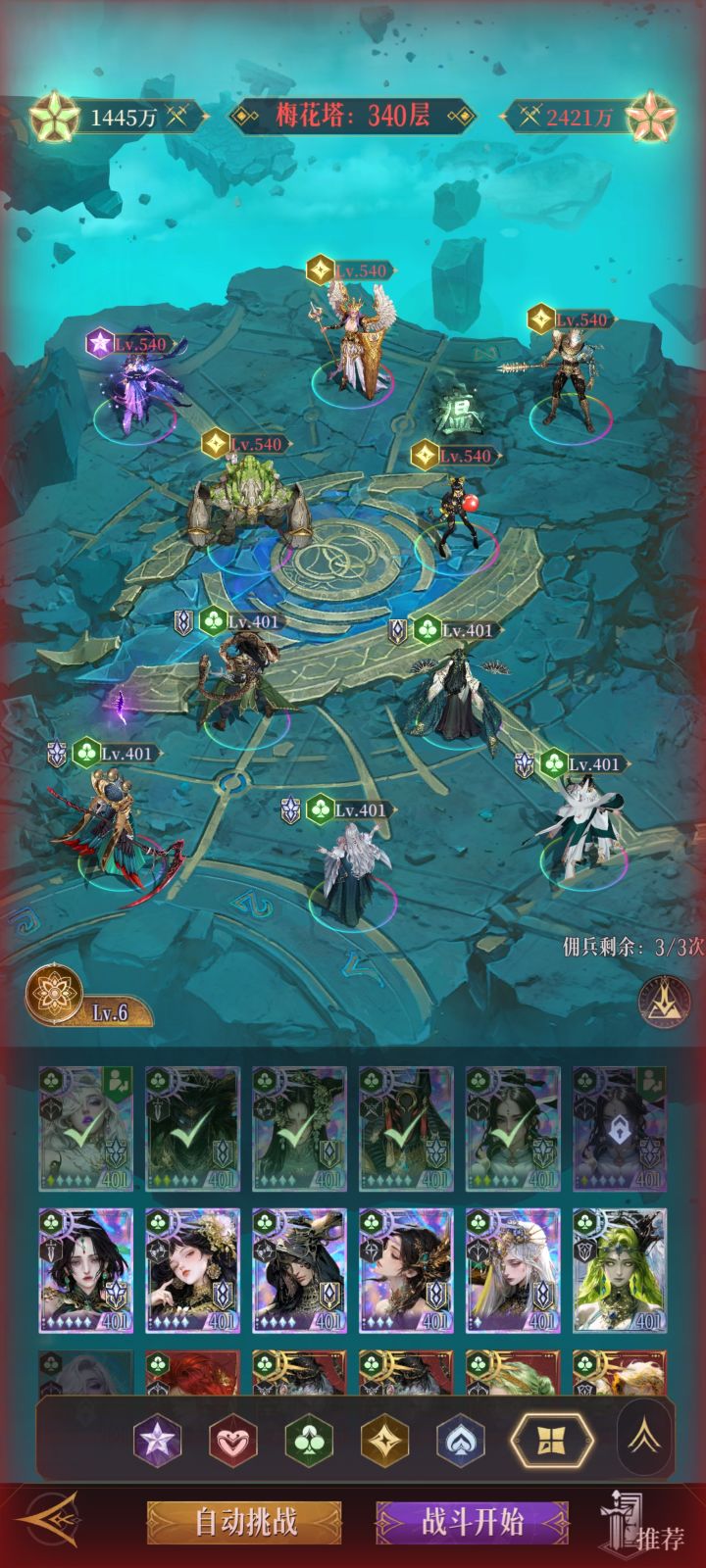 梅花塔这一关卡一个月了,借卡也过不了,复制别人的阵容但只显示上阵三个人物,有大佬能给个阵容吗