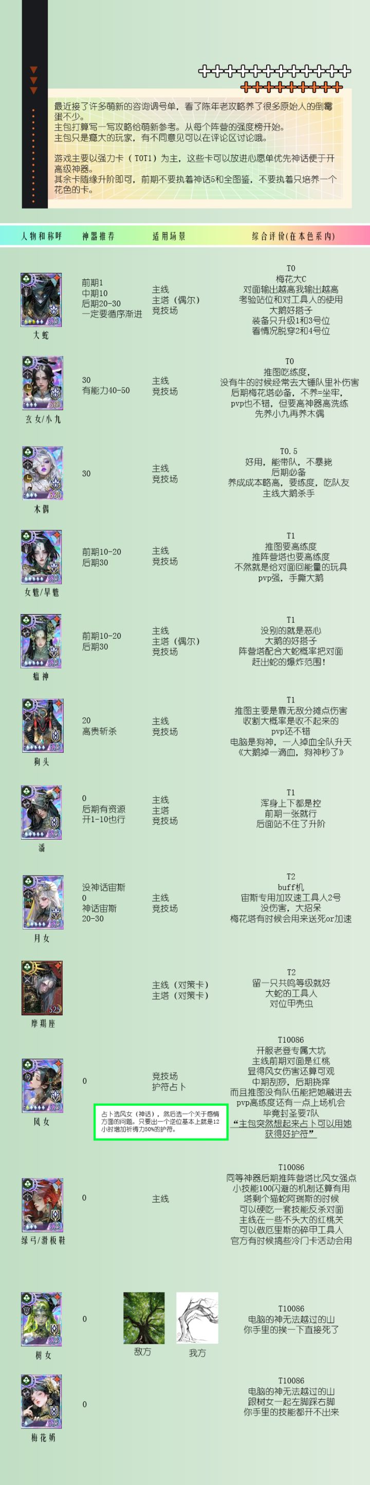 六编:添加新卡奶牛的使用体验。推图:搭配方面配孟婆比较无脑省心。主包的孟婆一直是放大锤队里,加上猫凤凰和玄女补伤害,牛可以把玄女换下去。赛特和舞神自有他们的去处,这队不带他们玩。推图还是好用的,我找了个58章400级的号打了一下,凤凰神器10猫1牛1孟婆大锤30,打对面的梅花,没什么负担,神器1级加上装备没升级没觉醒(号主没升级资源了),输出差不多3觉大锤的一半。群友打61章/64章/65章的