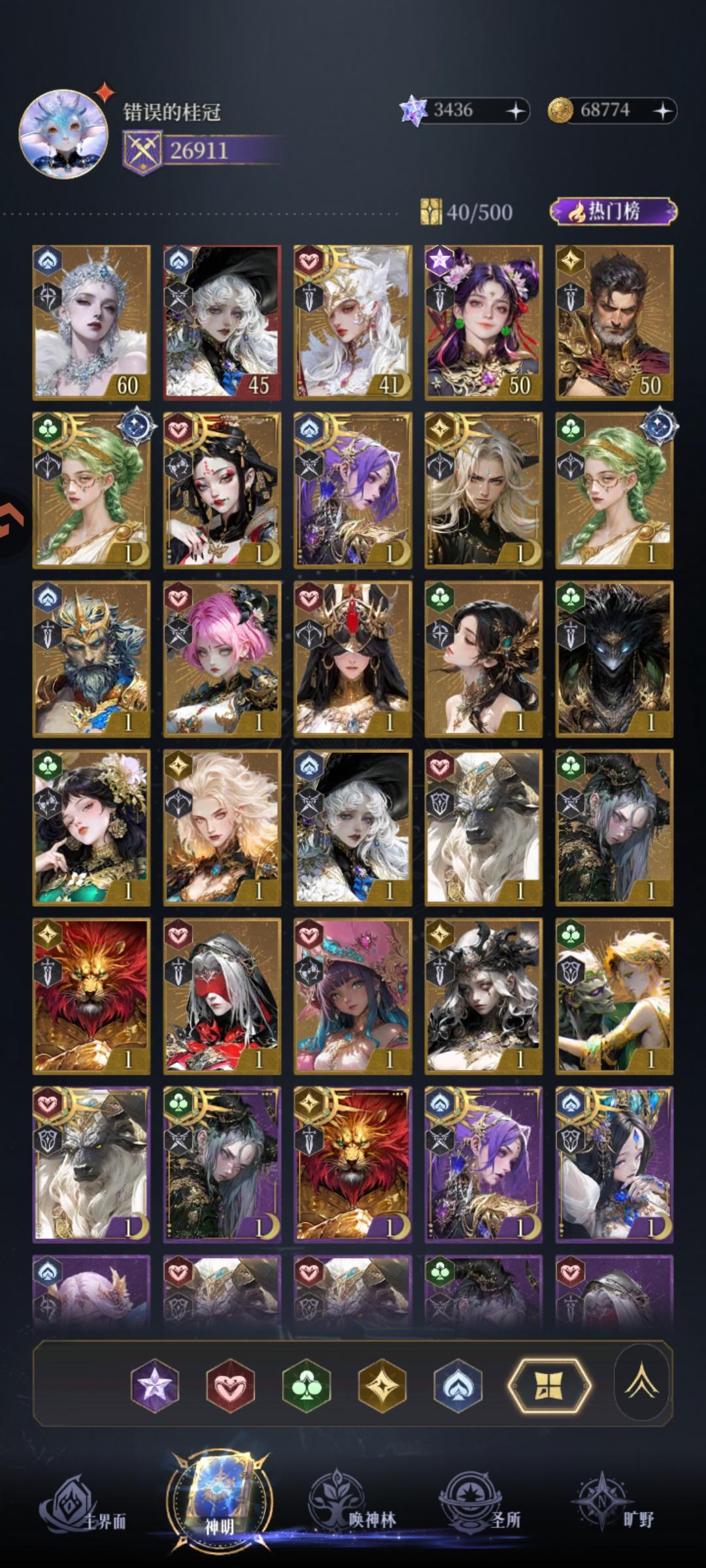 有人质疑,你是不是刷了,你是不是很肝,你是不是在人少区吃了资源。我刷没刷目前也只有8个神5,金色图腾才2个三级,钻石少的可怜。而且我在苹果3区,所有的排名活动都捞不到好名次,高阶角斗场进不了前8。宙斯哪吒也借不到,唯一借了大佬一次哪吒过500层,半天没还,大佬私我让我还,我没看到,结果把我好友删了,从那以后我都不借宙斯和哪吒了。所以通关57章真没想象中的难。搭配好过图很快的,下面言归正传。我只以