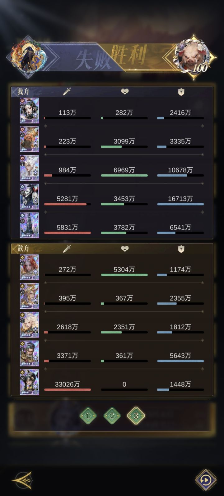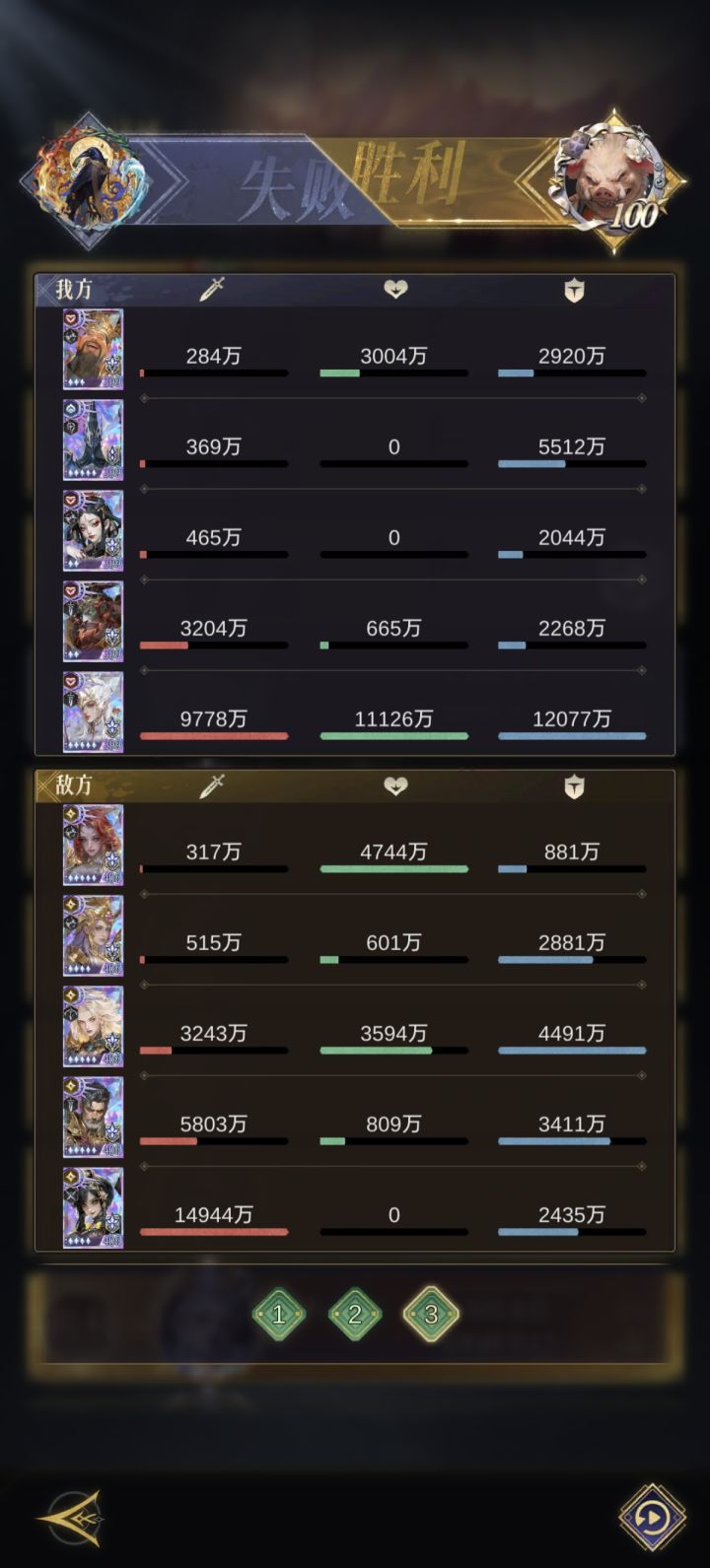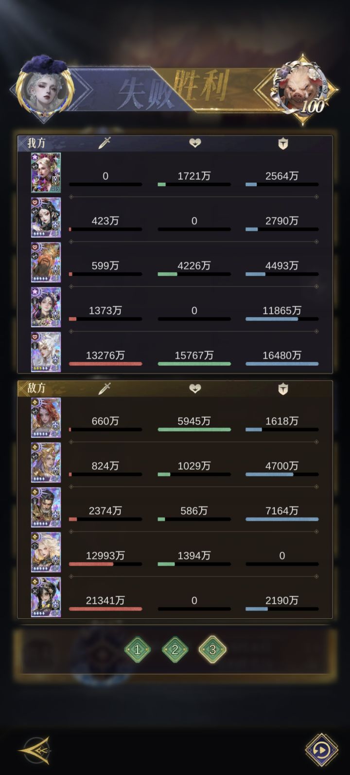 五张图都是三队竞技场的防守胜利图,因为进攻你可以自己选克制调位置,所以防守也能赢的就是好阵容,而且图一少了对面40级,含金量还是有的分摊伤害吃不到命中加成,猫猫几乎是百分百闪避,身上疯狂跳闪避但想打出伤害猫还要30神器和洗练强化会心率,分摊伤害能触发猫的闪避反伤,只是反伤只有暴击了才会在对面身上显现出来对于普遍玩家来说,大力神,舞神,猫猫是最平民的阵容