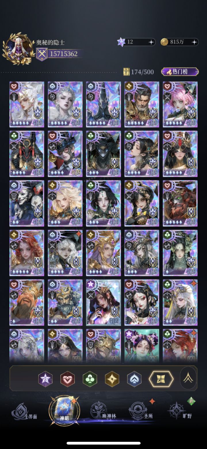 有人质疑,你是不是刷了,你是不是很肝,你是不是在人少区吃了资源。我刷没刷目前也只有8个神5,金色图腾才2个三级,钻石少的可怜。而且我在苹果3区,所有的排名活动都捞不到好名次,高阶角斗场进不了前8。宙斯哪吒也借不到,唯一借了大佬一次哪吒过500层,半天没还,大佬私我让我还,我没看到,结果把我好友删了,从那以后我都不借宙斯和哪吒了。所以通关57章真没想象中的难。搭配好过图很快的,下面言归正传。我只以