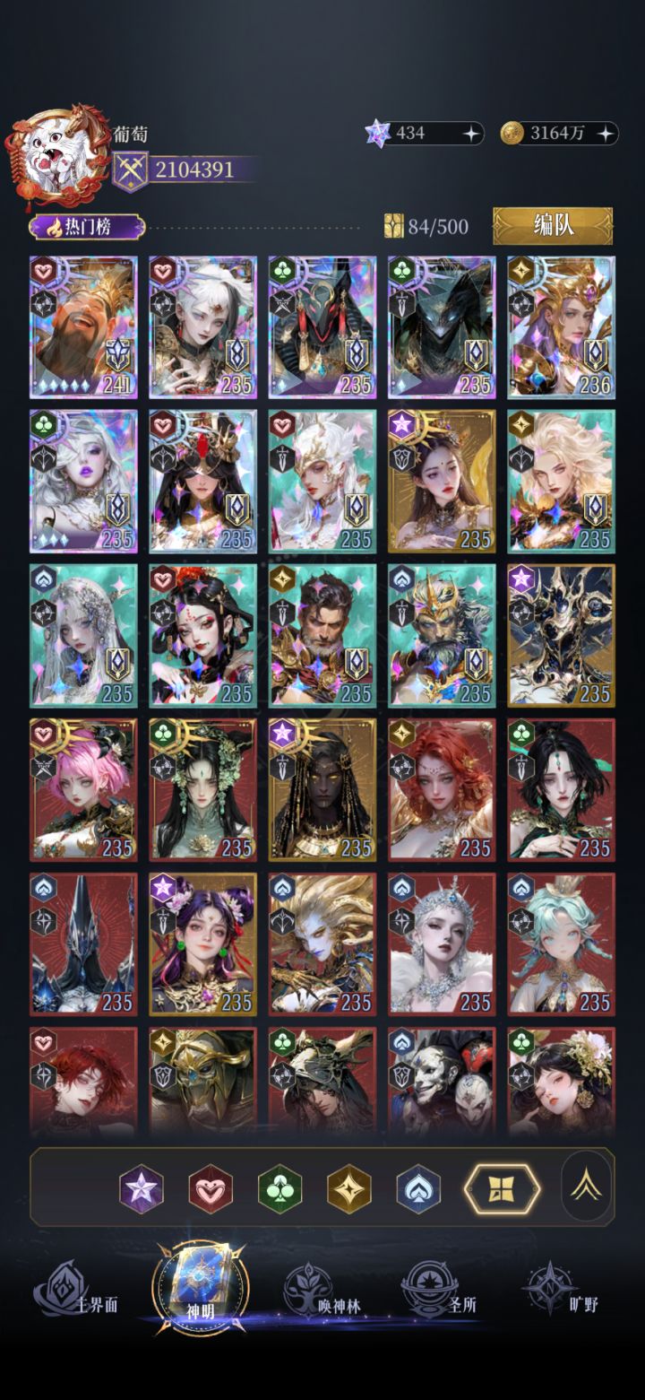 新卡建议拉满!拉满!拉满! 61章是两队红桃,主包手上这个号之前一直是宙斯轰大鹅的,等级不算高,中规中矩,有时候免不了要带财神和潘,前面还要有能抗的前排。 这关对面6008w战力,我方厄里斯神器才20,装备觉醒也低,现在可以放心让厄里斯带一队了,甚至狗头也有地方用了,女娲在这种后期有个绝世传奇不稀奇,前面也用不到这么高的品阶。不要说精卫也行,后面的前排肉,很容易超时的,更别说大鹅这种肉,那更是超时