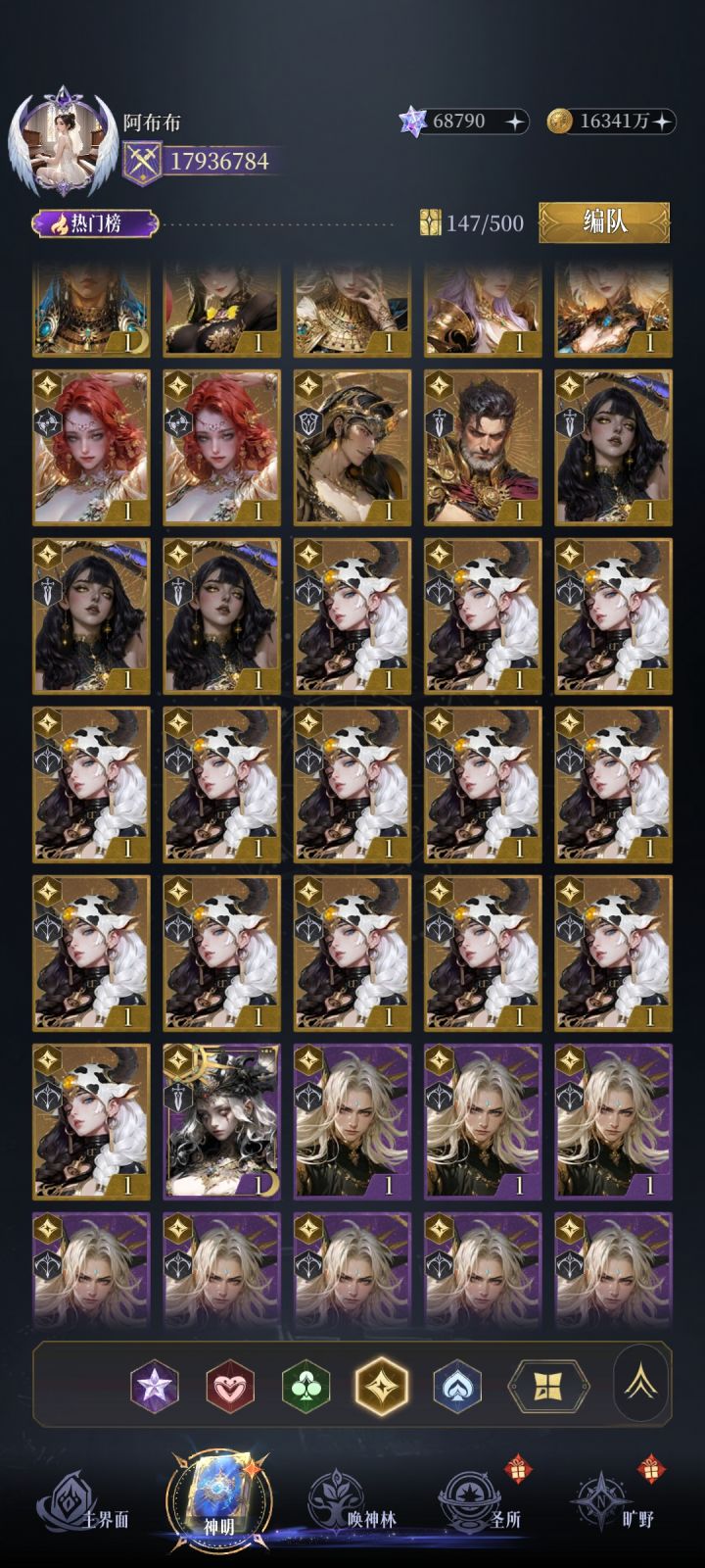 玄女入坑,氪了大几千,一直有囤囤鼠习惯,也是走了很多弯路,通过论坛的帖子和帖子里大佬的指点,目前阵容如图因为当时没有其他花色的阵容,所以绷带女和这次小苹果up的时候顺带针对抽了雪女,努特和大鹅(真的难抽),这两个up虽然有点鸡肋也基本都满了,好多星卡(比如时间,酒神)都还没有接下来就是主要是怎么配阵容,卡在39-45,宙斯已经神话,接下来的虫子和意识怎么用,继续宙斯到五还是抽哪吒,还是其他星卡