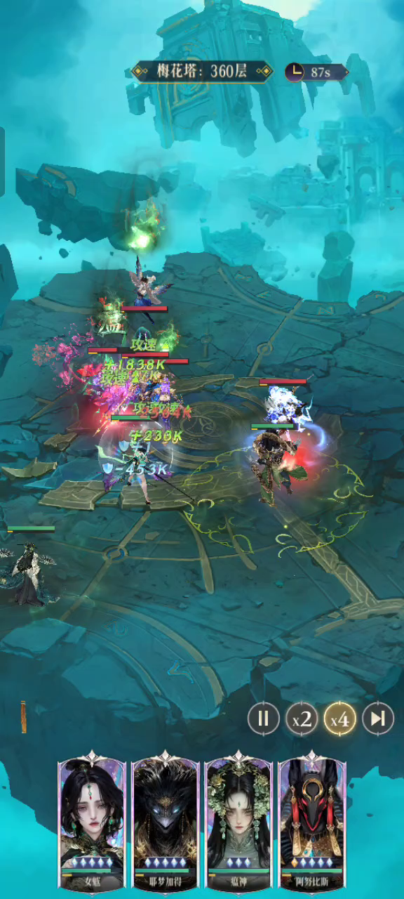 660 层塔,推荐都要哪吒,可惜借不到,只好琢磨了下,用上图排阵可过😁,过的视频没录到🥲大概凹几次就过了