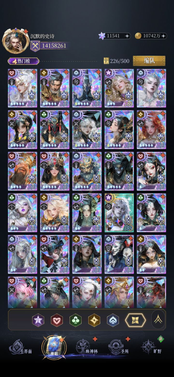 下面是我的推图阵容。括号里的角色是摇摆位寒冬队:甲壳虫海王孟婆寒冬(小锤黑鬼女娲)三相队:尼克斯小丑三相舞女月老(有些阵容上个女武神和时间,财神队借神话宙斯打)(蝎子有些阵容有奇效)大力神:大锤塞特猫女蛇瘟神财神队:旱魃财神酒神时间(精卫或者超过绝世的宙斯,有些阵容酒神换女娲)哪吒队:无需多言,随便打(任何一队打不过都可以上个女武神试试)借了神话宙斯就把时间财神给三相,神话宙斯放财神