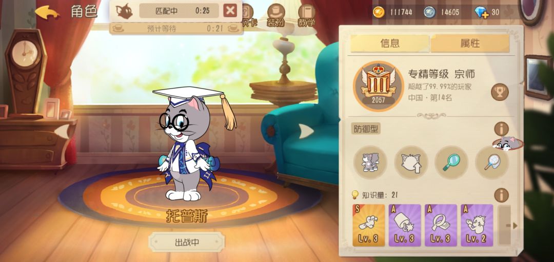 猫和老鼠手游:玩猫只要不带知识卡,大概率会匹配到人机
