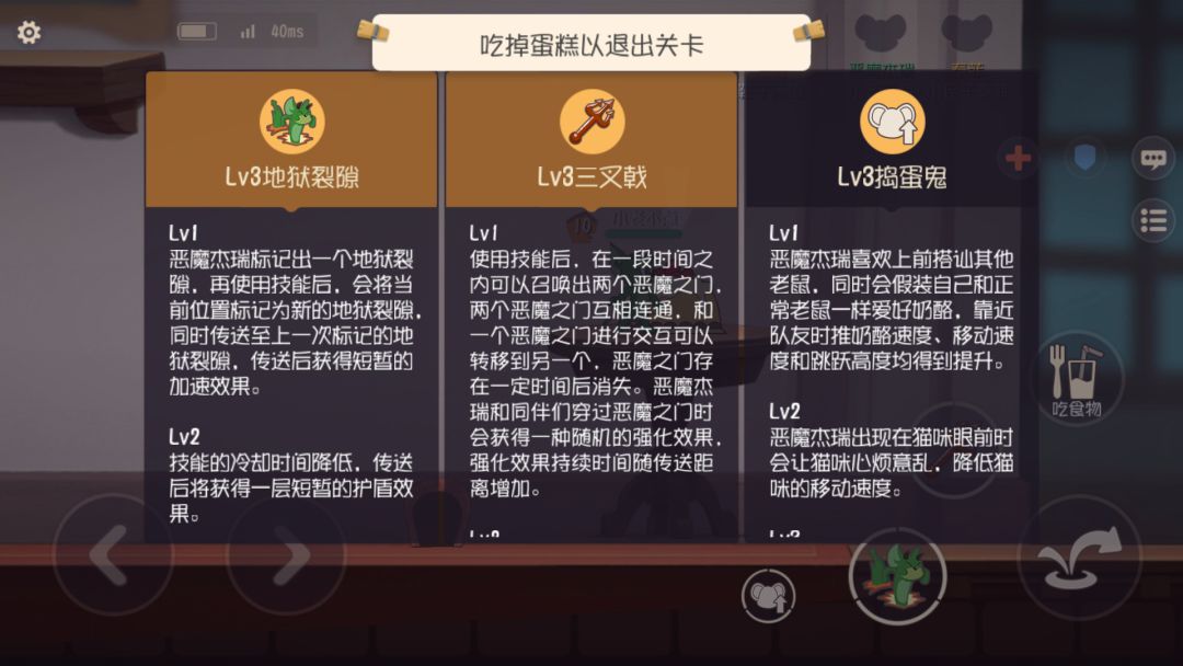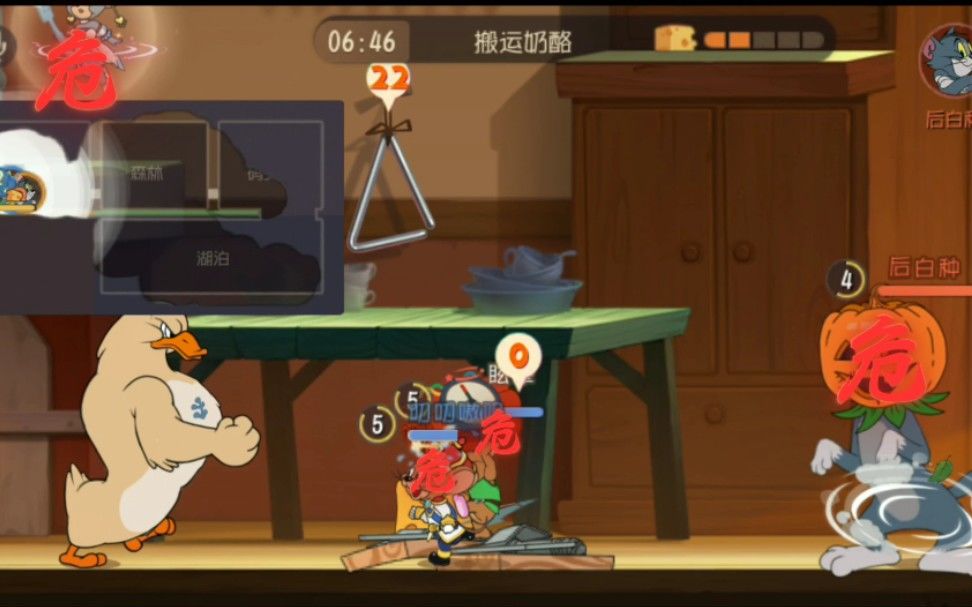 技能方面 技能都是带有控制的,被动可以免疫碎片,二级还可以弹琴回血 属性方面 推奶酪速度中等,攻击中等,移动速度较快,救队友较慢 知识卡 第一逃之夭夭,因为救下队友后可以跑的更快,如果猫踩了仙人掌那就追不上了 第二无畏,这个大家都懂,不说了 第三救救我,可以让队友快速救你,克制平底锅,当然,也可以换成吃货 护佑可以防止猫阴你,也可以换成别的知识卡 技能加点 ①二级加被动 三级加仙人掌 四级加仙人掌