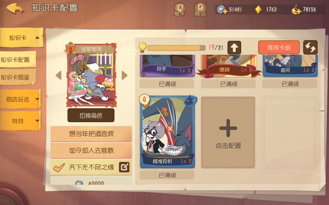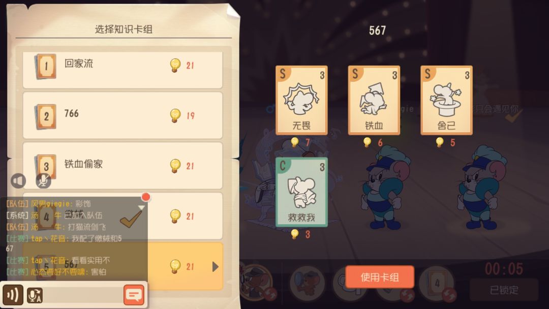 既然必须打阵地战,那就全能卡组。 你不是剑飞尼宝侦探吗,我既然抓不了防守不了,那就不带击晕穷追了,但你想隐身偷我老鼠?不好意思。你想速敲我墙?不好意思(堡垒二,牧场最佳) 最常规(速燃可以换其他的四点卡或猫液) 熊猫馆最好用这套(孟金奇狂喜) 真速刷卡组,但很艺术(游乐场可) 黑鼠这角色,你说要爪刀卡吧,假设我带击晕了,能一套秒,但是我能打到老鼠的身位,应该也是可以撞到的,一般也是先撞后接爪刀,所