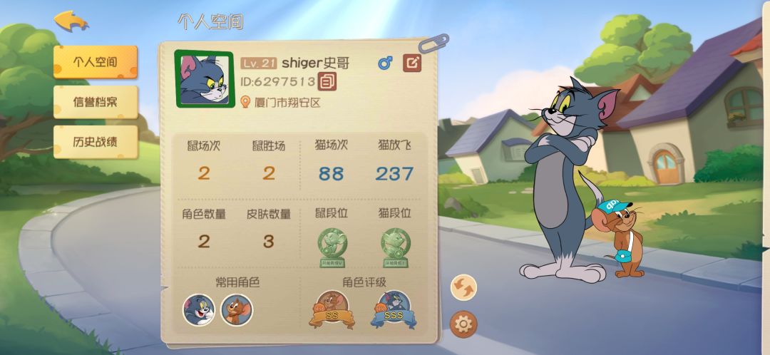 首先附上自己的玩猫胜率图,通过常用角色可以发现,我用的是汤姆,没用其他猫 OK,教程开始 这是古堡图。 首先从进游戏开始,地图展开时,不要急着进入,看着地图那里会出来机器鼠,再点击地图进入,无脑抓那只机器鼠就行,抓完后升级“手型枪”技能,因为这个技能也能对机器鼠造成摧毁效果。然后去经验蛋糕那里等,因为会有老鼠过去吃。然后抓的时候不要一直点抓捕按钮,有冷却,会错过最佳的抓捕时机。在机器鼠抓蛋糕和跳跃