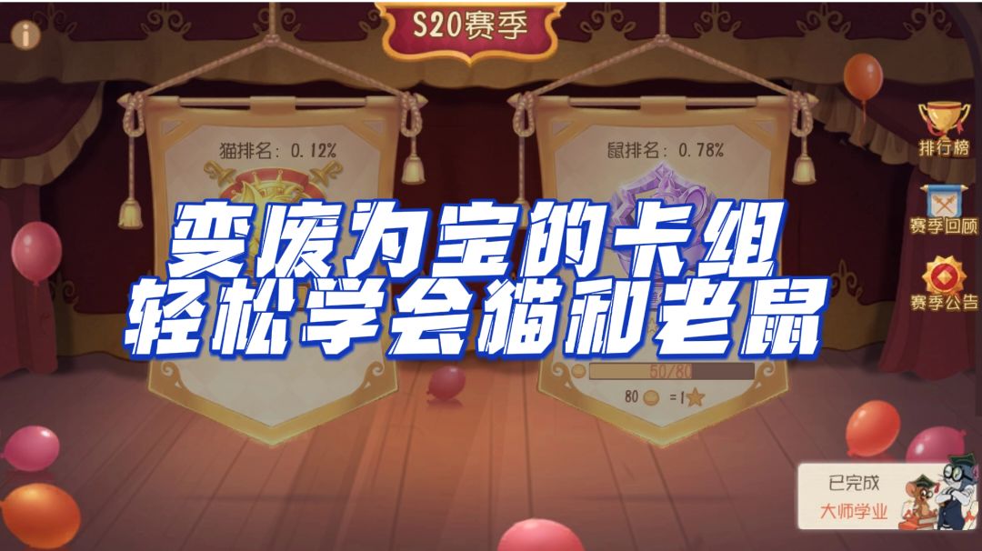 我是从六一开始玩得,玩了差不多快100场Tom了吧胜率大概在百分之九十左右,看到有很多人都在说猫弱(其实猫不弱),都不愿意玩猫,所以想出个攻略让多一点的人来玩猫(绝对不是我玩老鼠一直排不到猫的原因)。 放图 (段位低的原因是排位开始的时候我基本都没空来打游戏) 一,开局 开局选位置的时候尽量选离经验蛋糕和老鼠洞口比较近的位置开局,这样比较容易遇到机械鼠。 开局机械鼠有两种打法 1:死盯着一个追 开