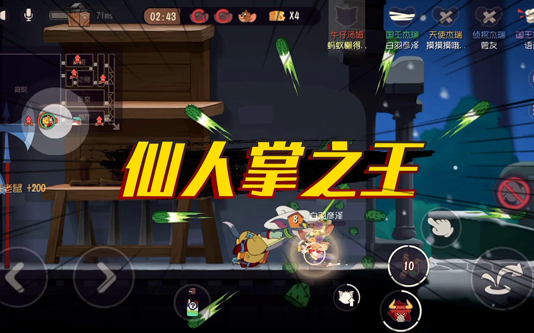 猫和老鼠手游:仙人掌弹弓真的太好用了,三级之后直接团灭老鼠