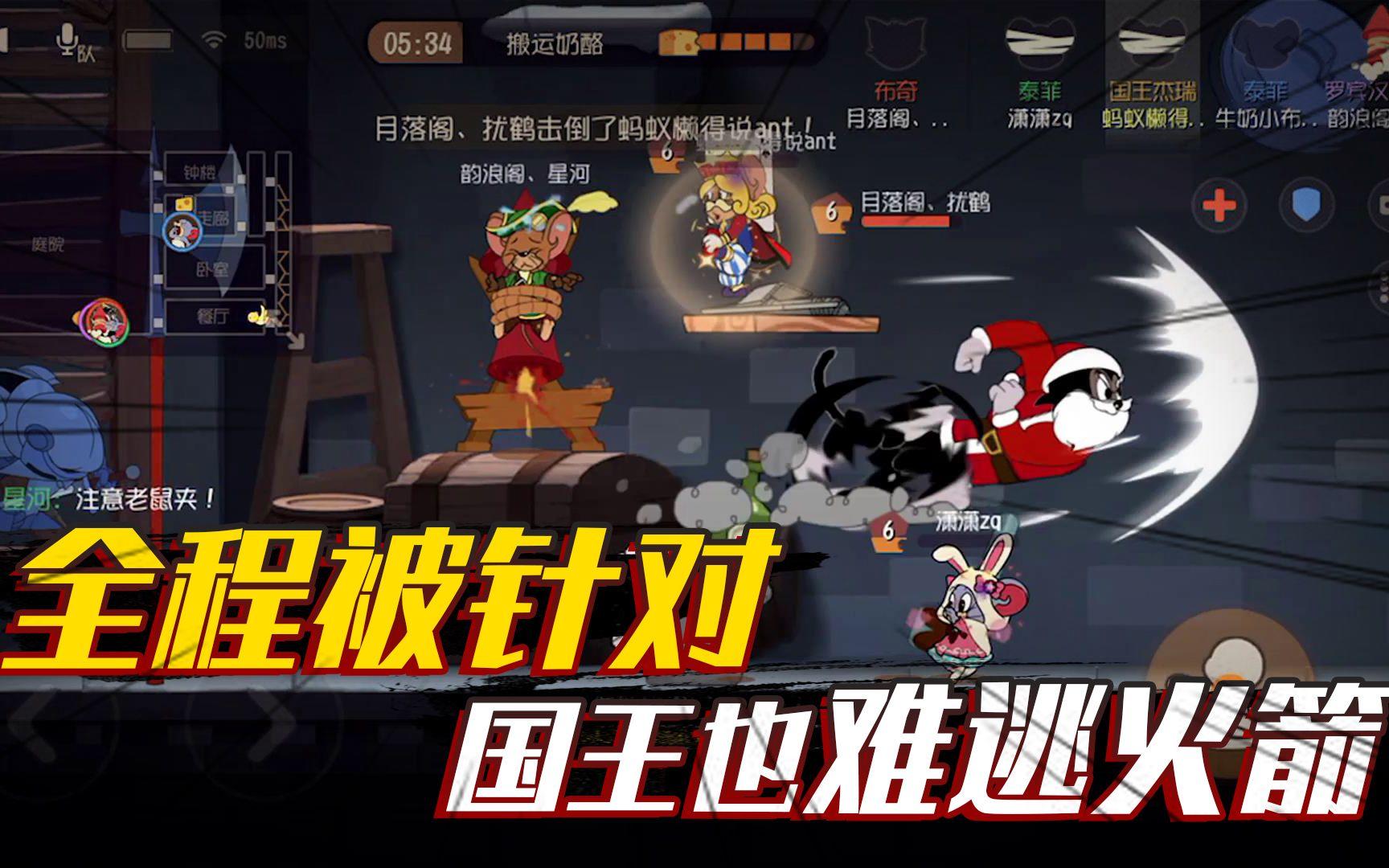 猫和老鼠手游:玩老鼠最怕被猫咪针对,就算是国王也难逃火箭!