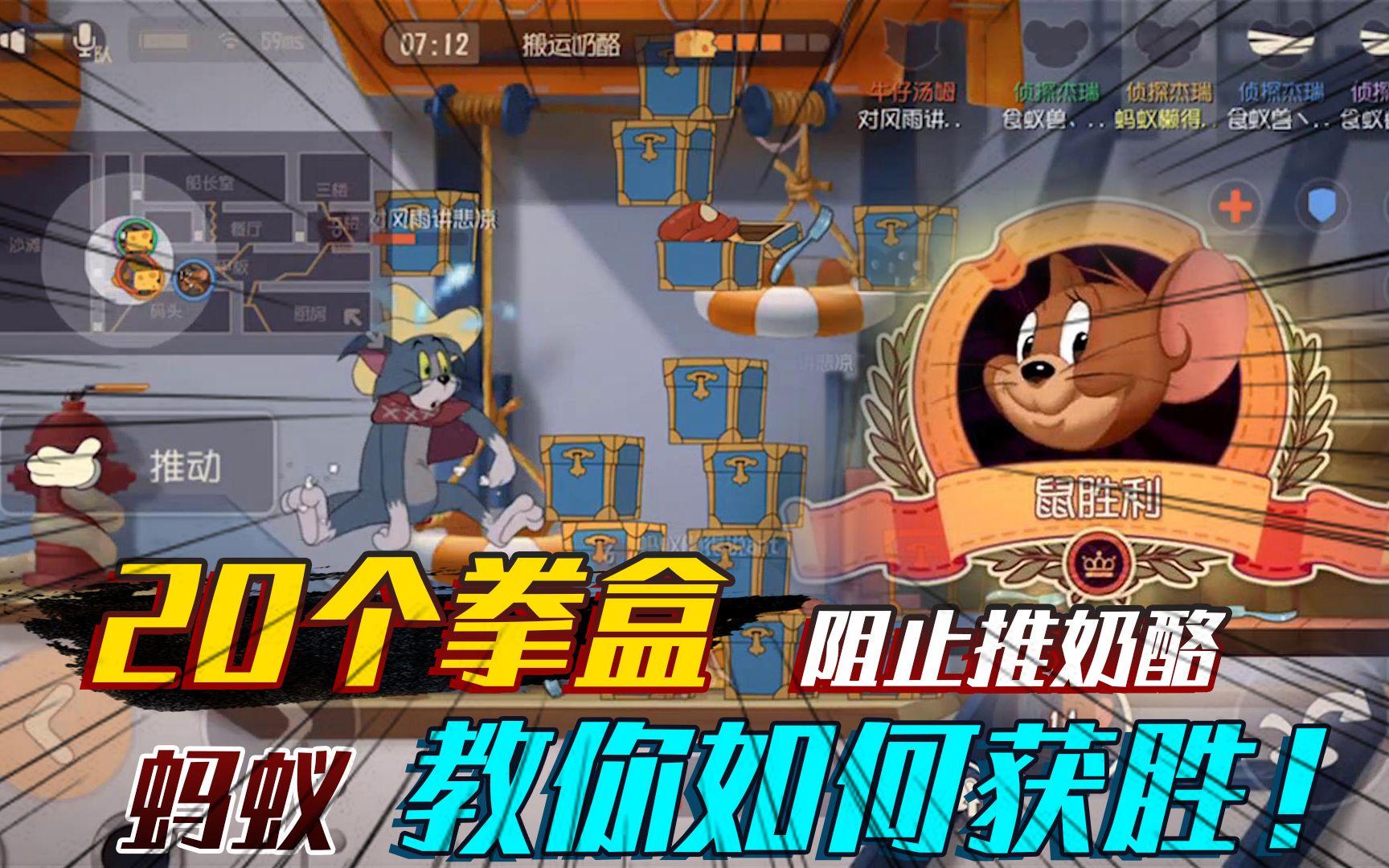 猫和老鼠手游:20个拳盒在洞口阻止推奶酪,看蚂蚁教你如何获胜!