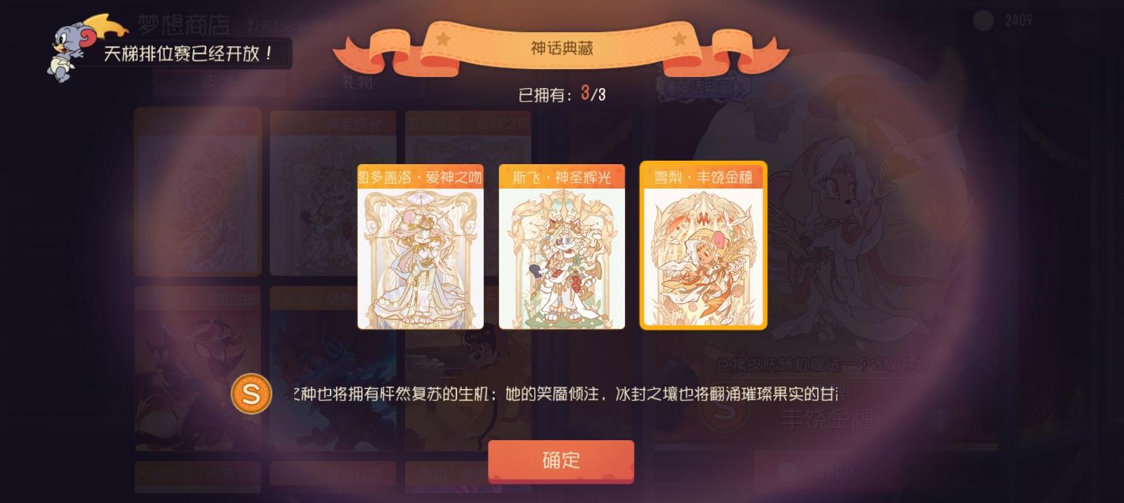 神话典藏系列皮肤终于齐活了!目前进度: 人手一个S(25/52) 3S(2/3)