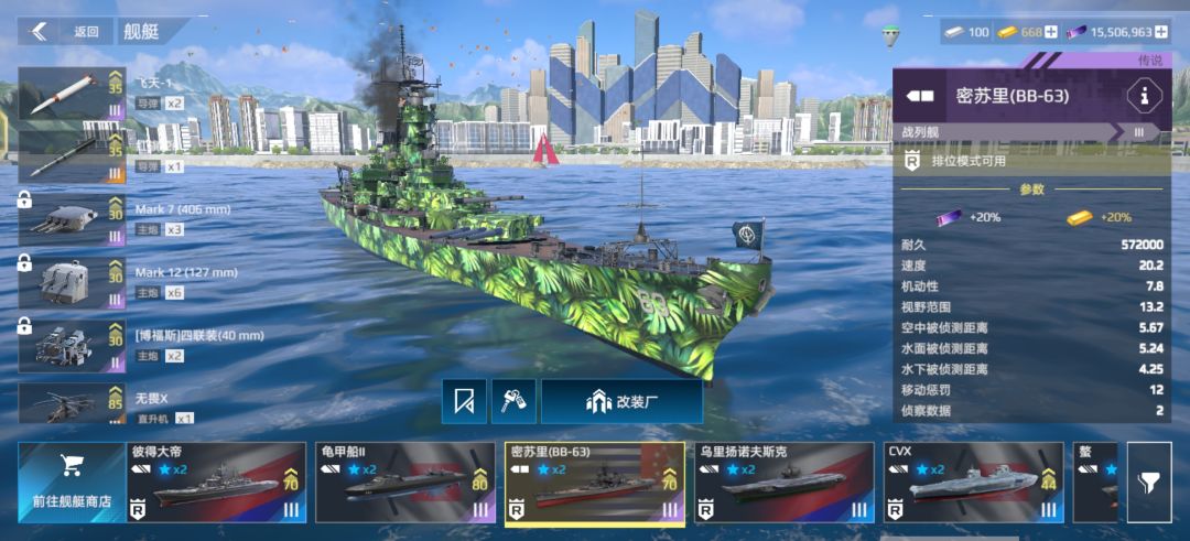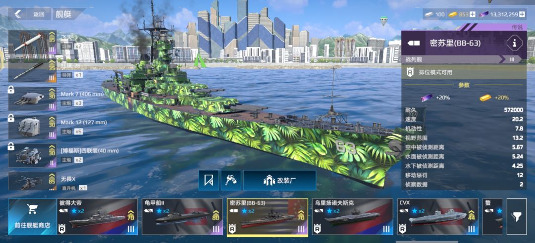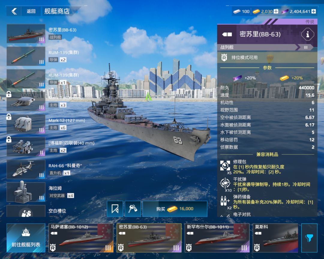 密苏里算是平民玩家可以拿到的比较强的战列舰了,其配置如何选择成为了广大玩家的难题。 导弹/放空大家在上面图里选择即可(当然有通行证的导弹用通行证的也可以比如红旗26/布拉莫斯2) 当然光有好的装备也不行,还需要你战列舰的对线意识。 其一:如果与对方满血战列舰互卡,不要先漏,卡住对方,让对方先漏,打先手可很大的实现反杀) 其二:注意船体炮的位置,避免被掩体或队友挡炮。(当然玩其他船的也不要停在战列舰