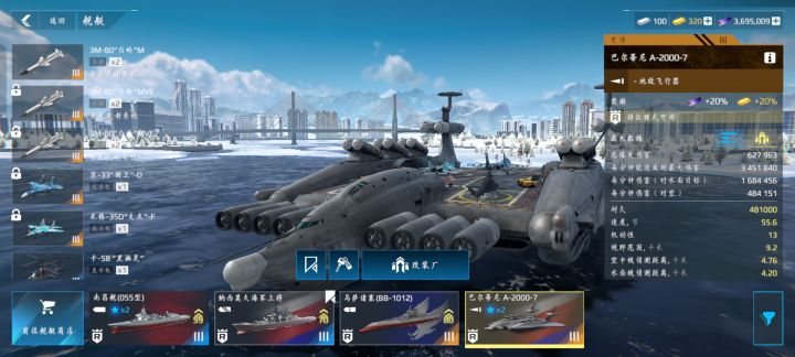导弹船基本玩不了,强伤为王,一门主炮能等效至少三个导弹,新手建议买两主炮的船。真人局导弹突防率难过10%,激光制导灌顶都破不了防,国服的超低延迟防空还是太权威了,