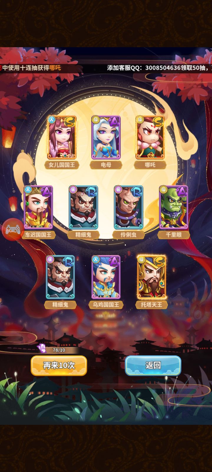 福利送的十连,直接出了哪咤杨戬,前期推图好爽