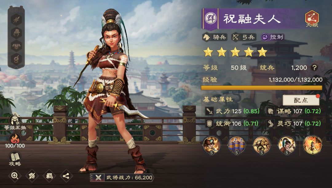 祝融夫人在部队释放技能时概率对敌方添加沉默,并且可提供技能增伤,我们在构建控制、 技能队时如果缺少武将,可考虑用祝融夫人过渡。今天给大家带来祝融夫人综合测评及配队推荐,大家可作为参考。 一、武将简评 祝融夫人作为紫卡,更容易提升星级、觉醒、技能等级,但数值稍低,可作为新手阶段开荒使用,后续有更好的武将可进行上位替换。祝融夫人拥有沉默附加、技能增伤,可用来构建控制队、技能队(在机制上与孟获适配度较高