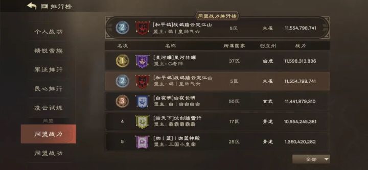 一:前言《偃武》XP2赛季第二桌作为第二个为数不多打全区的世界杯赛区,未进本就已经得到了全玩家的关注。本桌集结的同盟为:37区C老师带领的[星河耀]星河共耀、5区鸽丨皇帅气六带领的[和平鸽]战鸽踏云定江山、50区白丨白白白白带领的[白夜明]白夜长明以及17区霸霸霸霸霸带领的[临天下]仗剑踏雪行。二:外交情况 本桌匹配结果公布后,各大同盟相继外交,5区先后找17区、50区合作,均未达成协议。