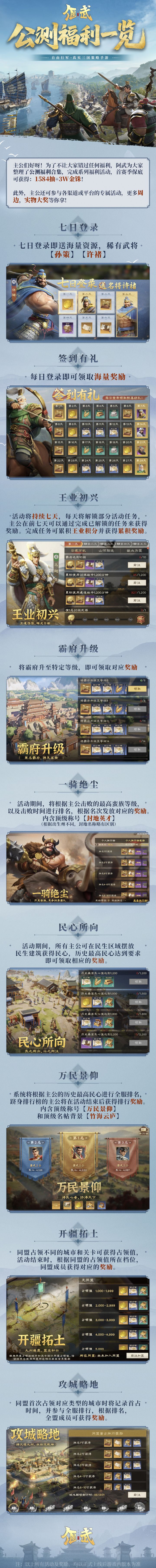 《偃武》公测拉开序幕,福利如烽火燎原!主公可还领得过来?阿武备下的这九重福利,助您在这三国策略沙场开疆拓土,聚民心、成霸业,且随福利东风,挥师破局!点击下方公测福利一览,即可查看福利详情👇