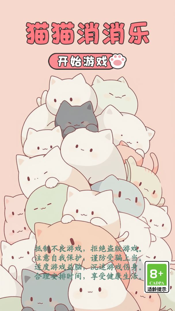 收集三个同一图案的猫咪可以进行消除,消除所有猫咪后通关